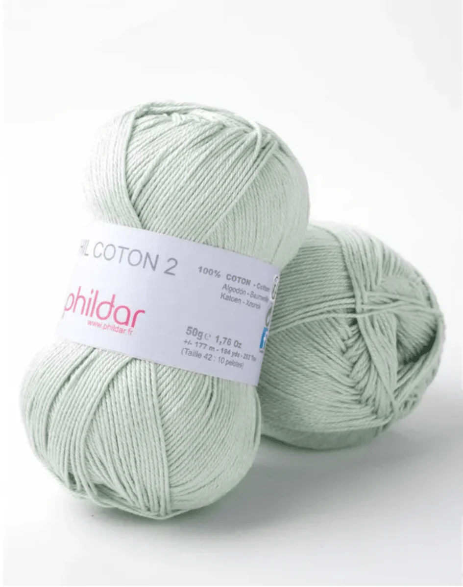 Phil Coton 2, es nuestro algodón 100% con aloe. El algodón es una fibra vegetal, ideal para todo tipo de pieles. No pica y absorbe la transpiración. Cómoda para invierno y verano. Al estar enriquecido con aloe esta fibra ayuda a proteger la piel. No se separa al tejerlo y es fácil de trabajar. Es ideal para amigurumis, ropa y chales de bebés.