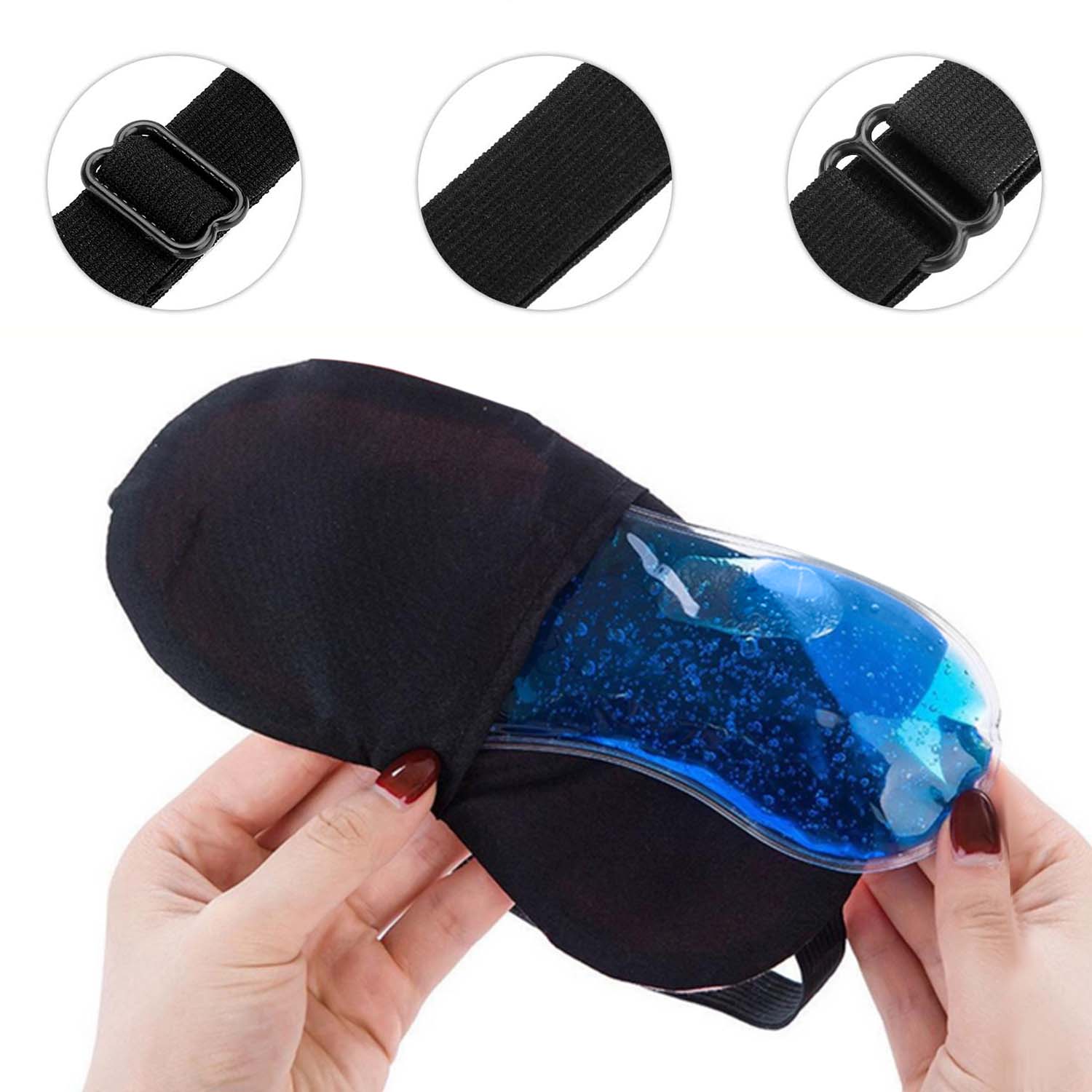 • Antifaz de gel: La inserción de gel promueven la circulación sanguínea de los ojos y alivian la fatiga muscular ocular; perfecto para ojos hinchados y ojeras.