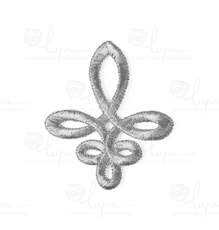 Aplicación bordada con forma de nudo simétrico, termoadhesiva.