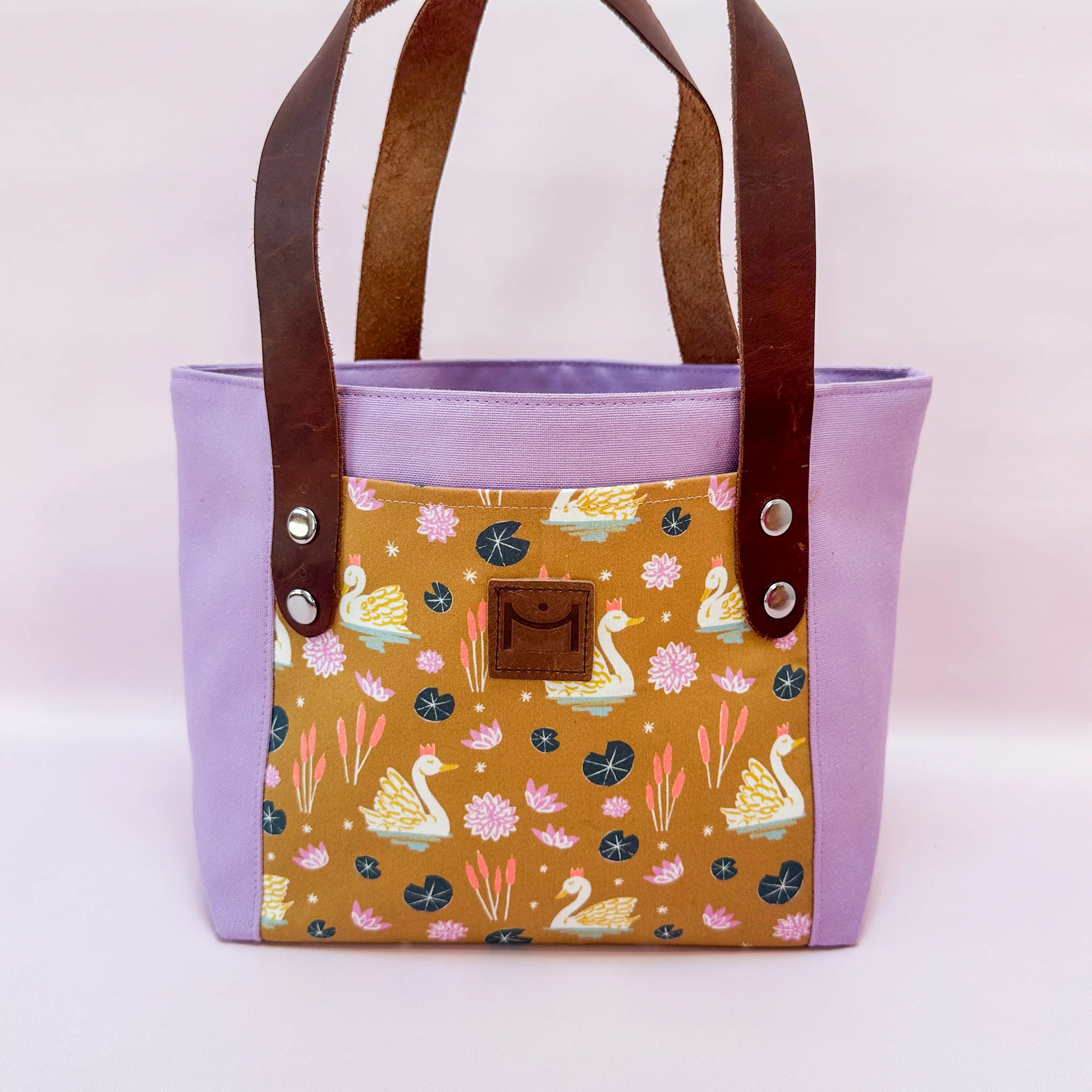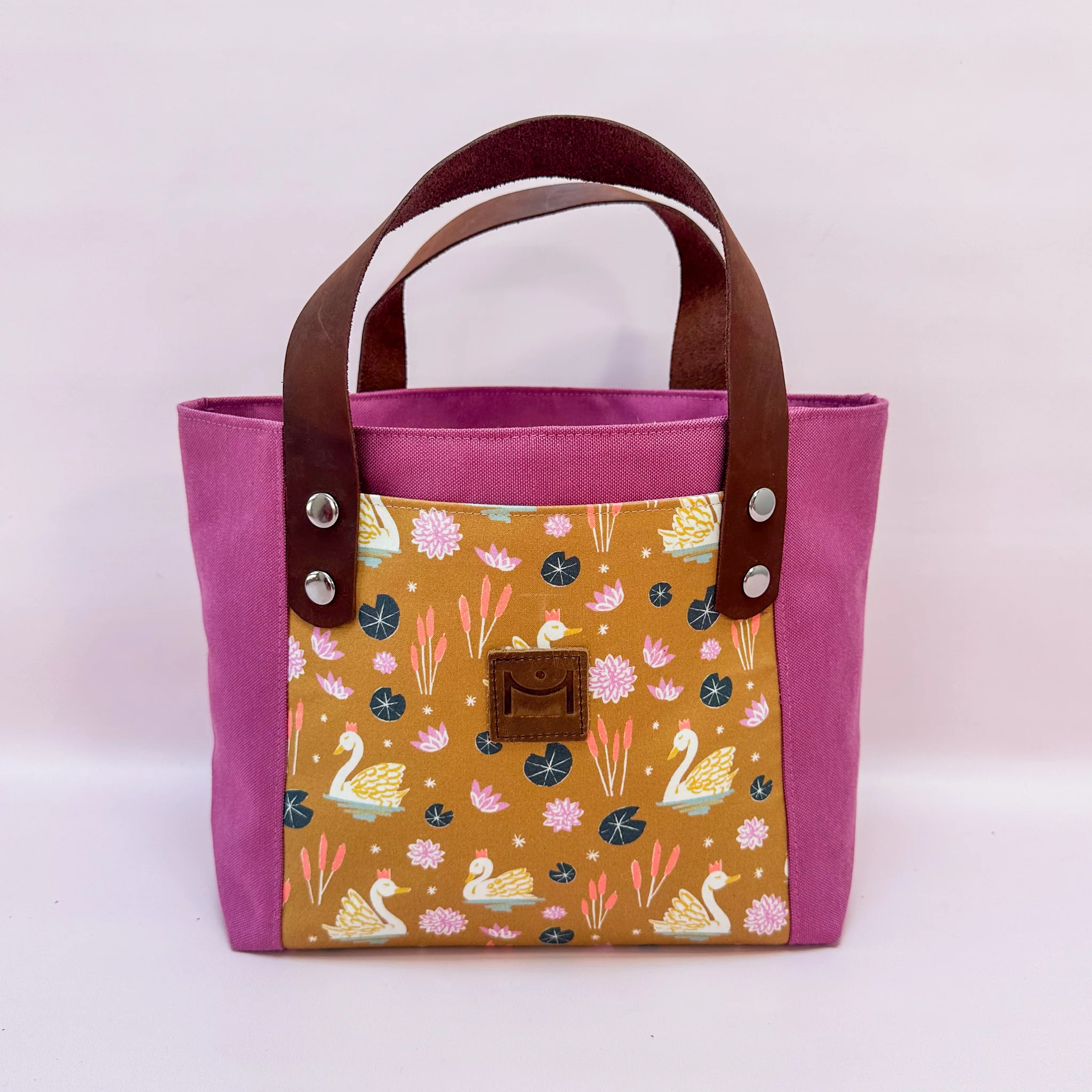 - Exterior: A elección dentro de las distintas telas y colores disponibles. Base de gabardina, lona o mezclilla 100% Algodón con aplicaciones de Algodón Premium estampado. Considera bolsillo simple en la cara frontal. Cierre con broche en la parte superior.