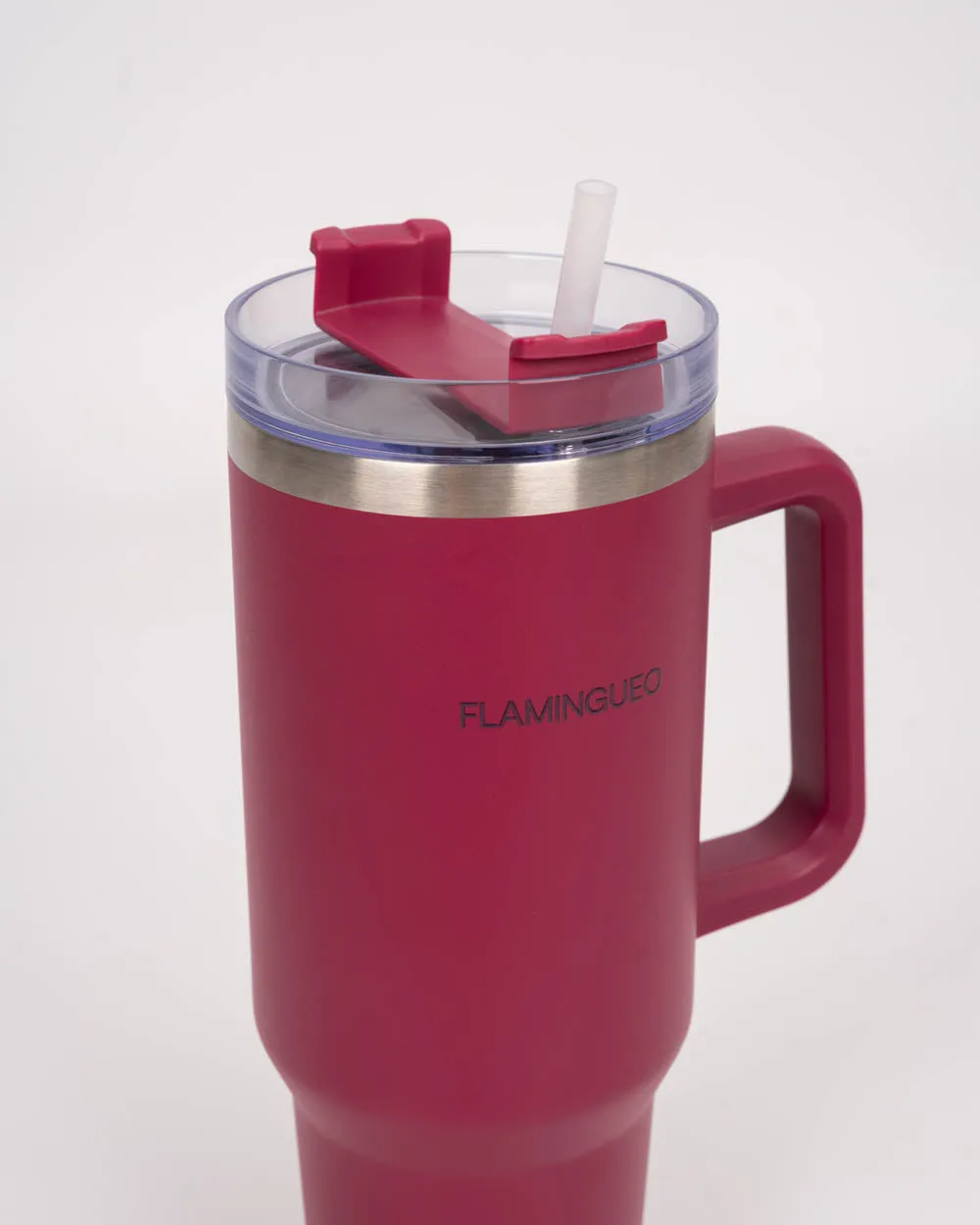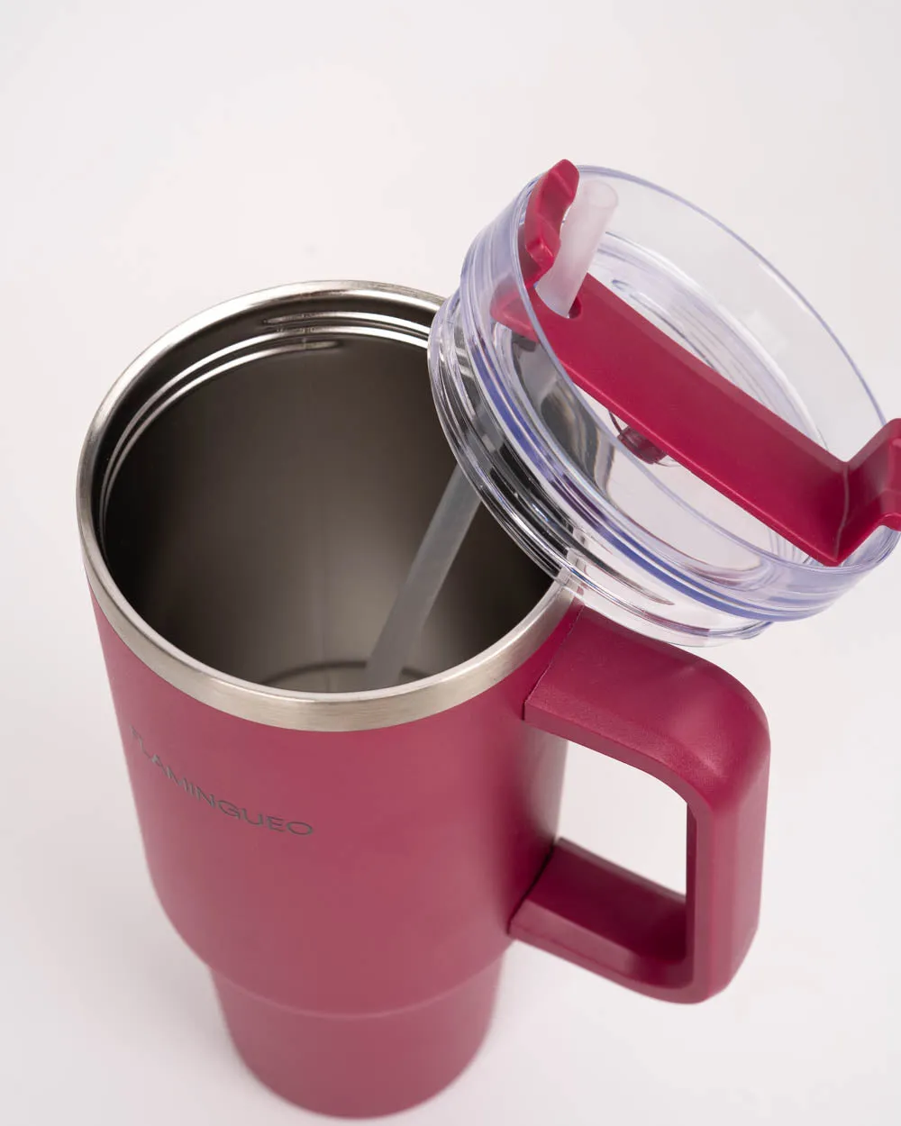 ¡Nuestras nuevas botellas termo son ideales para llevar tu bebida favorita a cualquier lugar! De acero inoxidable color burdeos y con capacidad de hasta 1,18 litros, te mantendrá las bebidas frías por 24h y las calientes por 10h.