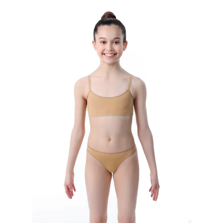Braga mini beige con pierna alta y fuelle de algodón. Los bordes del producto se procesan con cinta de silicona, un barril estrecho.