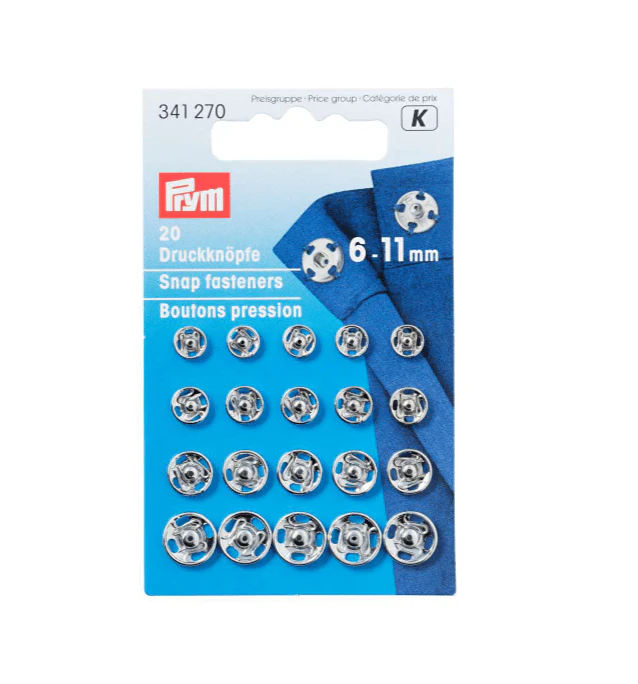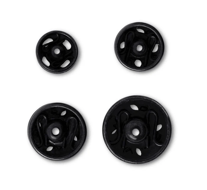 Set de broches a presión metálicos en bronce tamaños surtidos, con terminación plateada o negra.