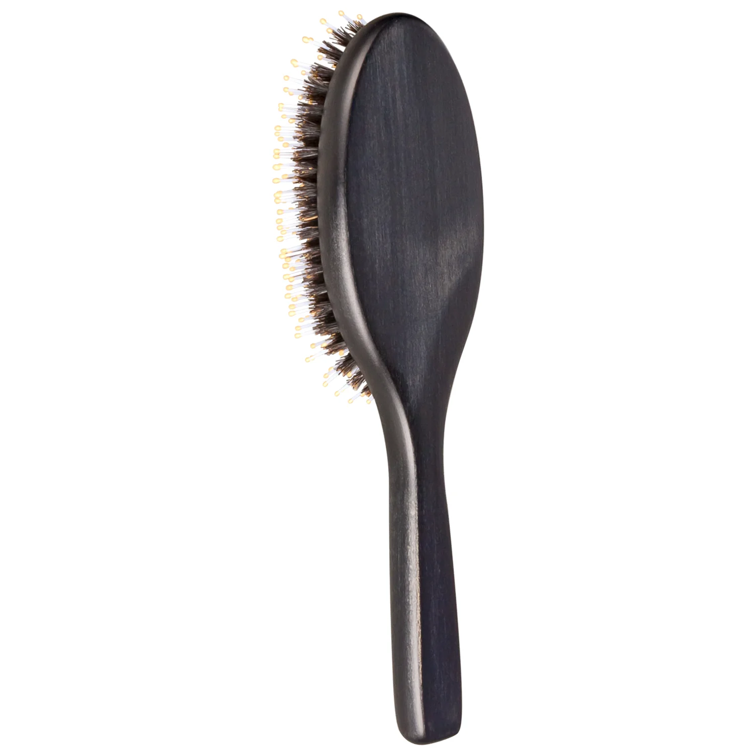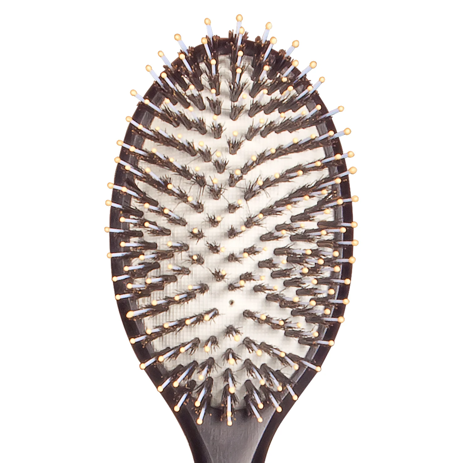 Cerdas de nylon y jabalí: Esta combinación es la clave. Las cerdas de nylon flexibles desenredan sin tirones, mientras que las cerdas naturales de jabalí distribuyen los aceites naturales de tu cabello, dejándolo increíblemente suave y con un brillo saludable. 🌟