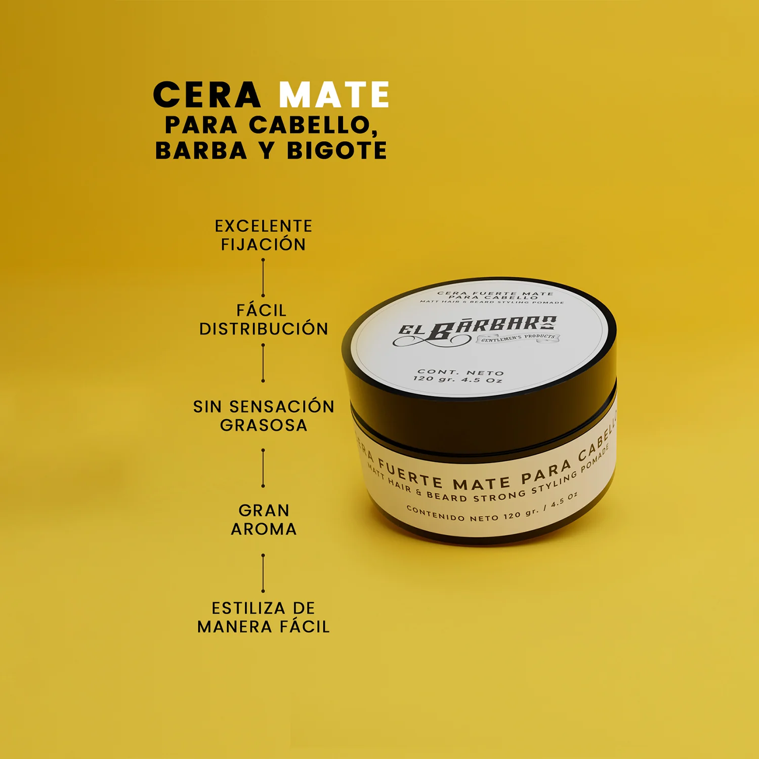 Cera Mate para Cabello Hombre Acabado Natural Volumen y Textura Con Cera de Abeja Sin Parabenos El Bárbaro 120g