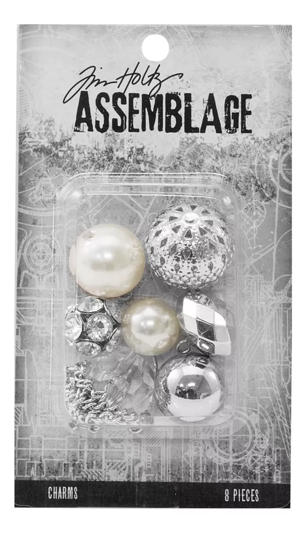 8 dijes de bolitas de perla o plateados con diferentes texturas y tamaños.