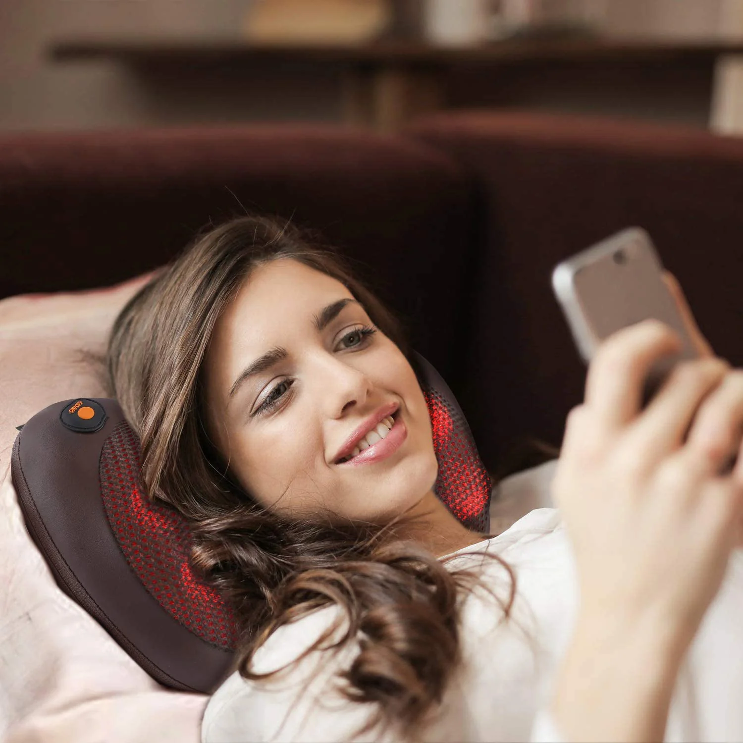 Masajeador tipo Almohada compacto. Alivia las tensiones musculares localizadas en las piernas, los pies, zona cervical y lumbar, brazos y abdomen. La termoterapia y la terapia Shiatsu están combinadas en este masajeador para aliviar y relajar tu cuerpo con un masaje efectivo.