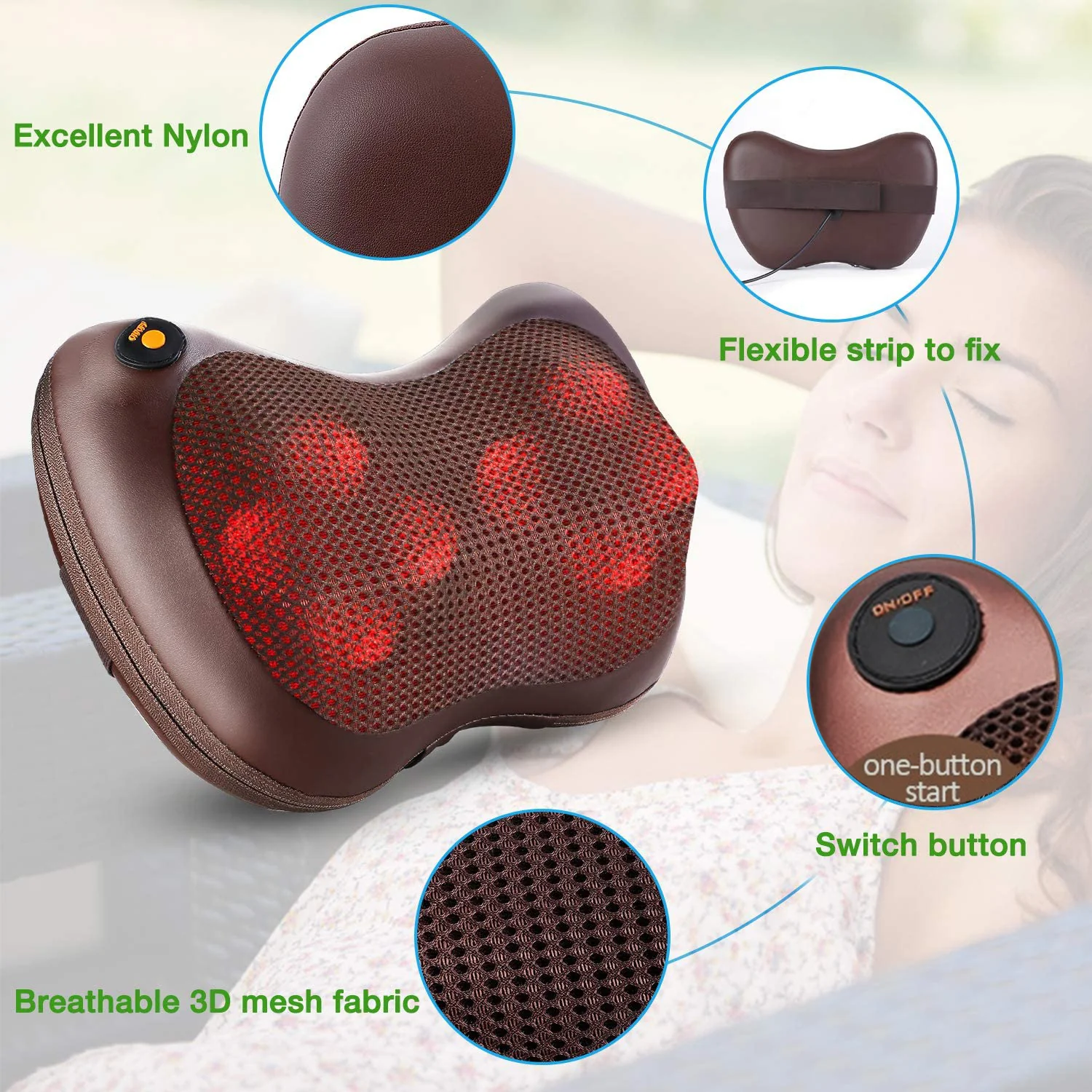 • Portátil y duradero: este masajeador de cuello y espalda incluye un adaptador de corriente de pared y un cargador de coche, por lo que puedes tener un automasaje eléctrico en tu hogar, oficina o coche cuando estás de viaje. Esta almohada masajeadora Shiatsu es el regalo perfecto para tus seres queridos.