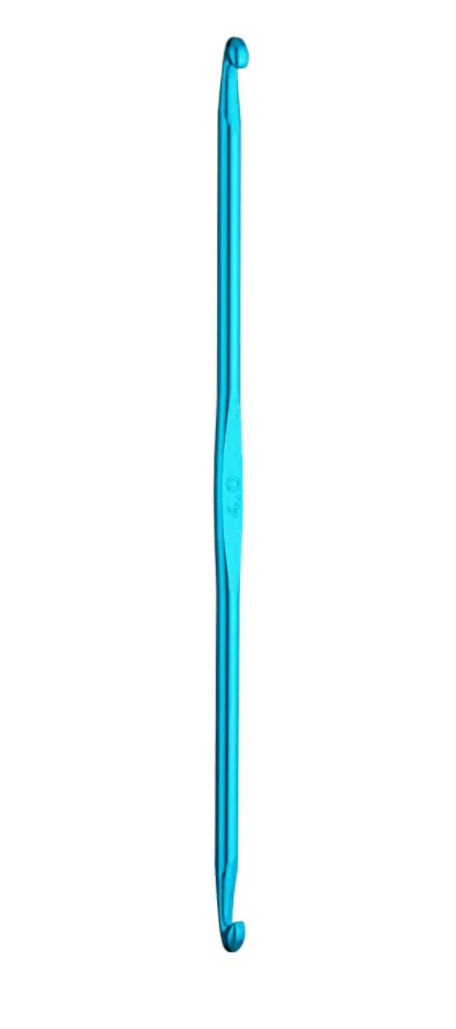 Crochet doble punta de 15 cm de largo, en aluminio de color. Para técnica de crochet tunecino.