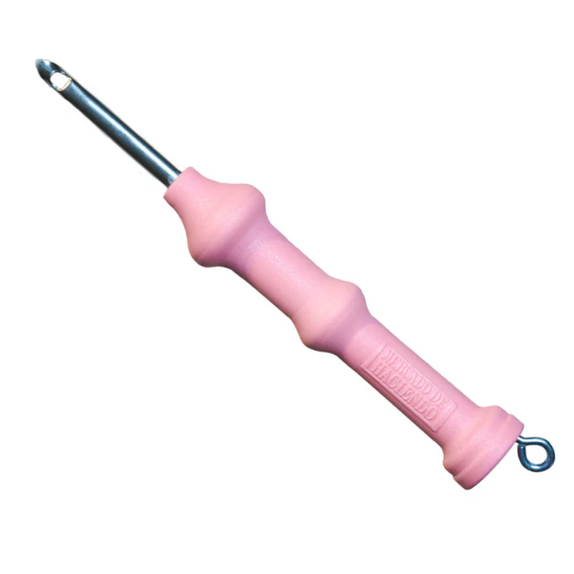 Decoaguja tamaño XL para bordar con lana gorda. Para bordar superficies grandes de manera rápida y fácil. La diferencia con otras es que no necesitás enhebrador. Tiene un mango diseñado para adaptarse cómodamente a tu mano. Es muy liviana y permite bordar sin esfuerzo.