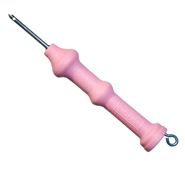 La Decoaguja tiene en la base del mango, una guía de acero que mantiene la lana en posición mientras bordás (puede quitarse). Viene con dos topes de caucho que sirven para regular la altura del bucle. Mirá este video para ver como se usan. Es perfecta para trabajar en grandes superficies: alfombras, tapizados, almohadones y tapices. La Decoaguja viene en una linda caja de cartulina y trae instrucciones de uso además de una muestra de lana para que puedas usarla a la hora de comprar la lana para tu proyecto.