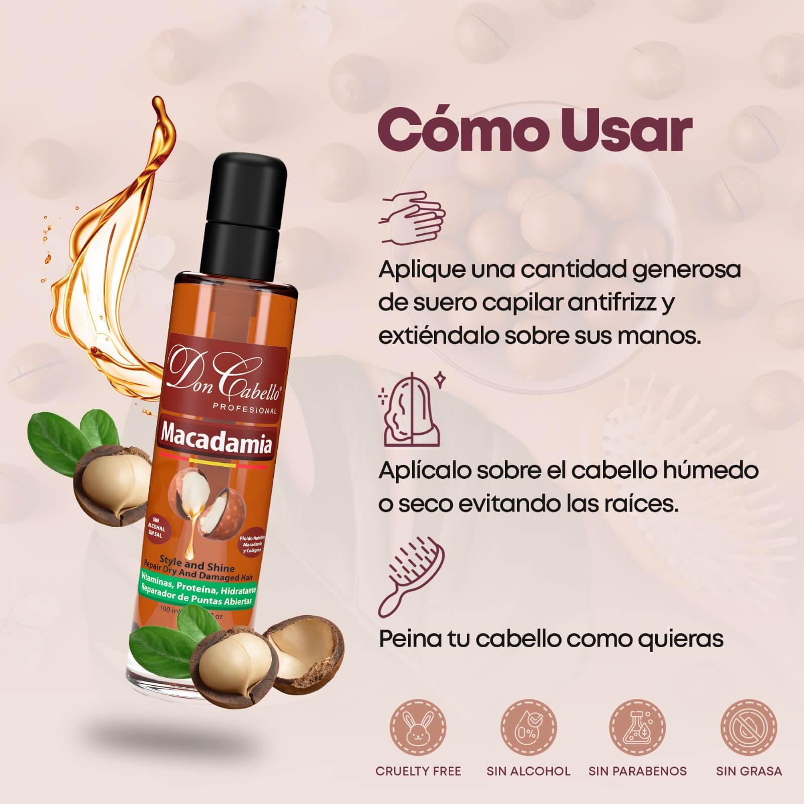 - Más que un simple producto, este serum es una experiencia sensorial y un tratamiento profundo para tu cabello. Comienza a usarlo hoy mismo y descubre la diferencia que el poder del aceite de macadamia puede hacer en tu melena.