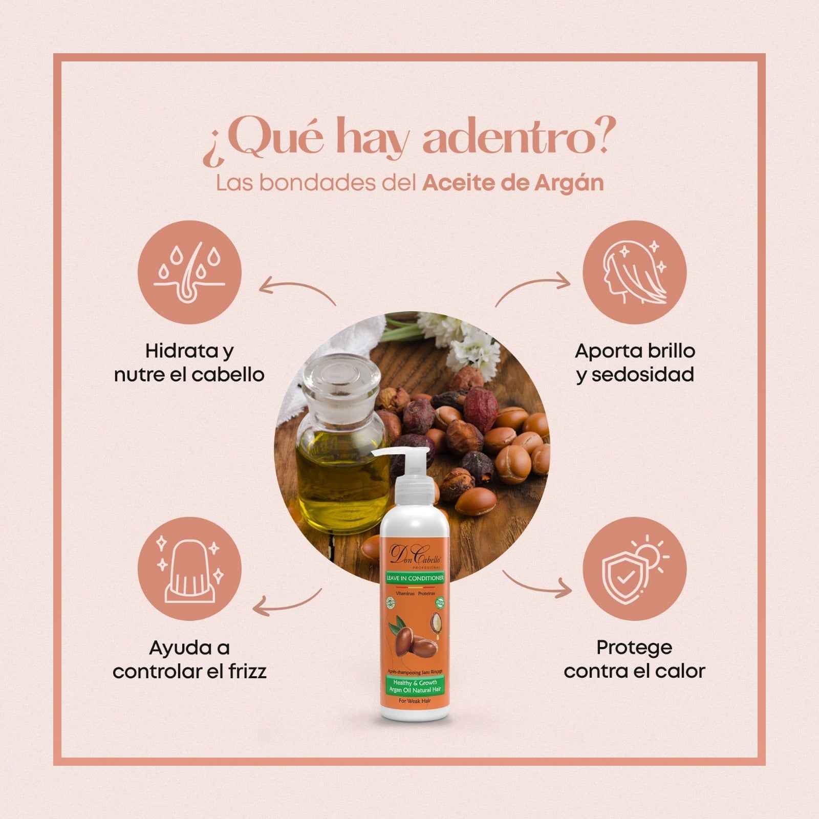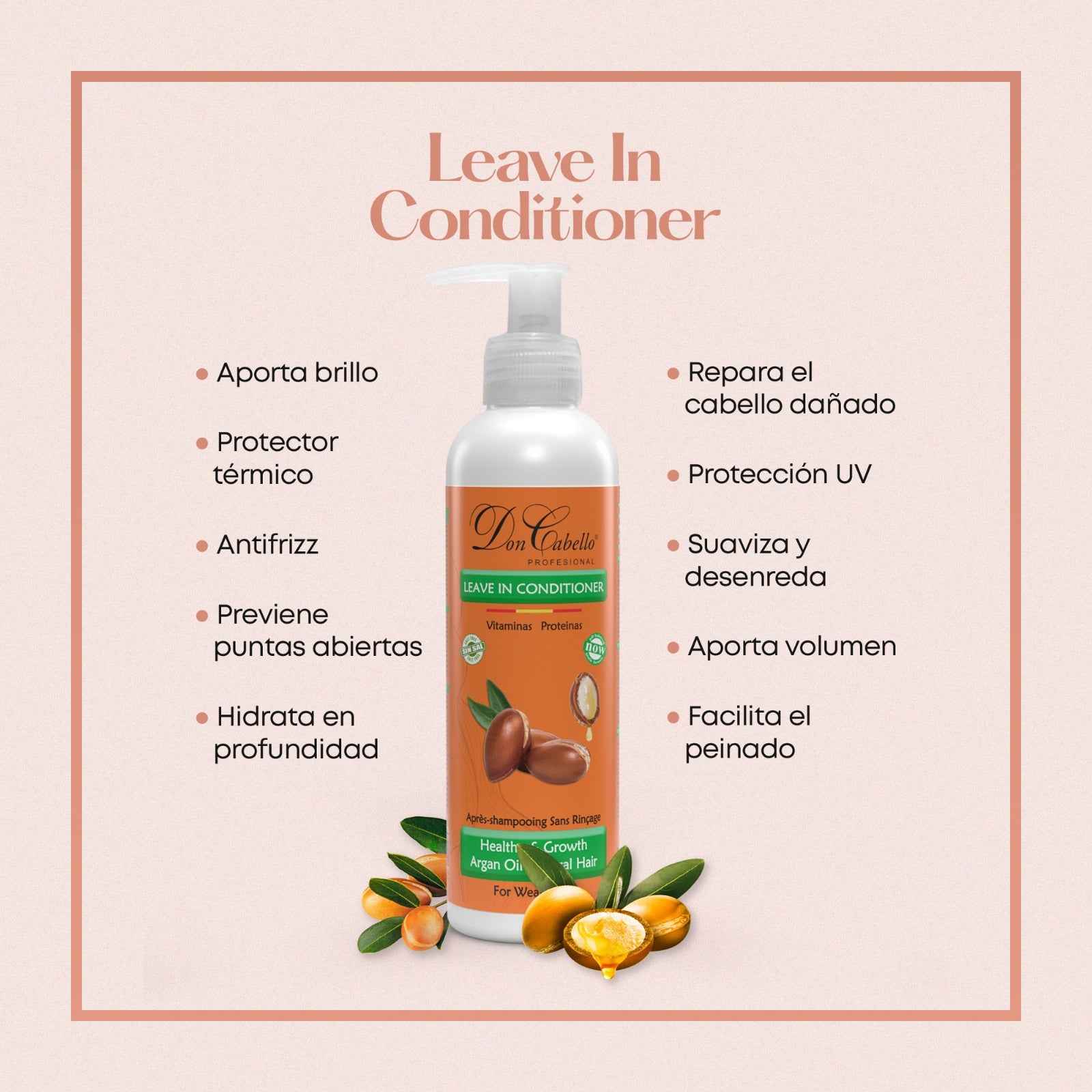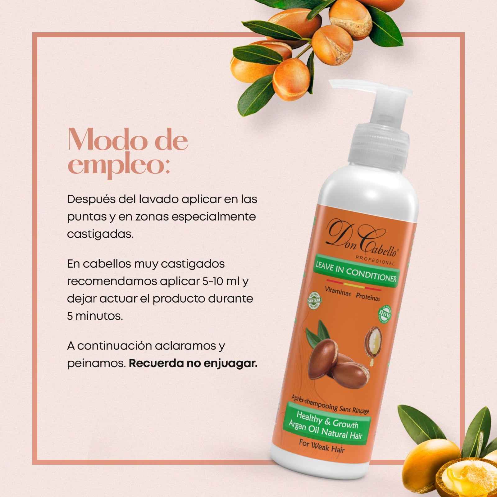 Don Cabello Acondicionador sin Aclarado para Cabello Débil y Dañado, Leave in conditioner con Aceite de Argán y vitaminas, sin Sulfatos, 250 ml