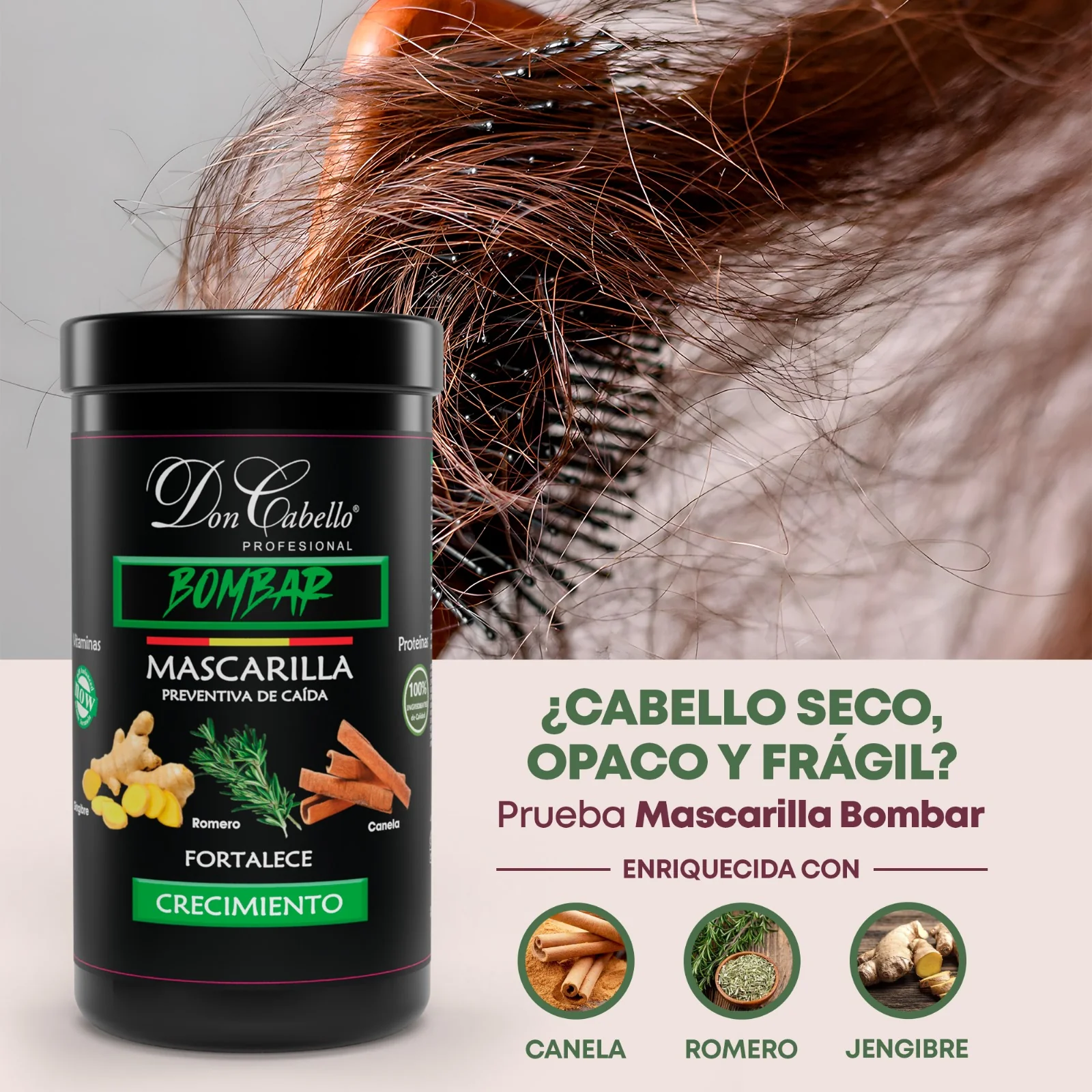 Don Cabello Bombar Mascarilla Preventiva de Caida con Romero, Canela Y Jengibre 1kg