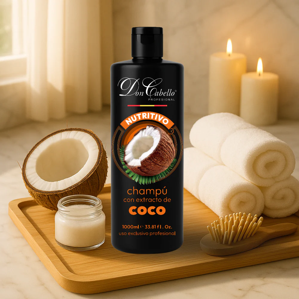 El champú nutritivo de Don Cabello ha sido formulado para aportar hidratación profunda, suavidad y mejorar la textura del cabello seco o dañado. Su fórmula combina aceite de coco y extracto de aloe vera, dos ingredientes conocidos por sus propiedades acondicionadoras.