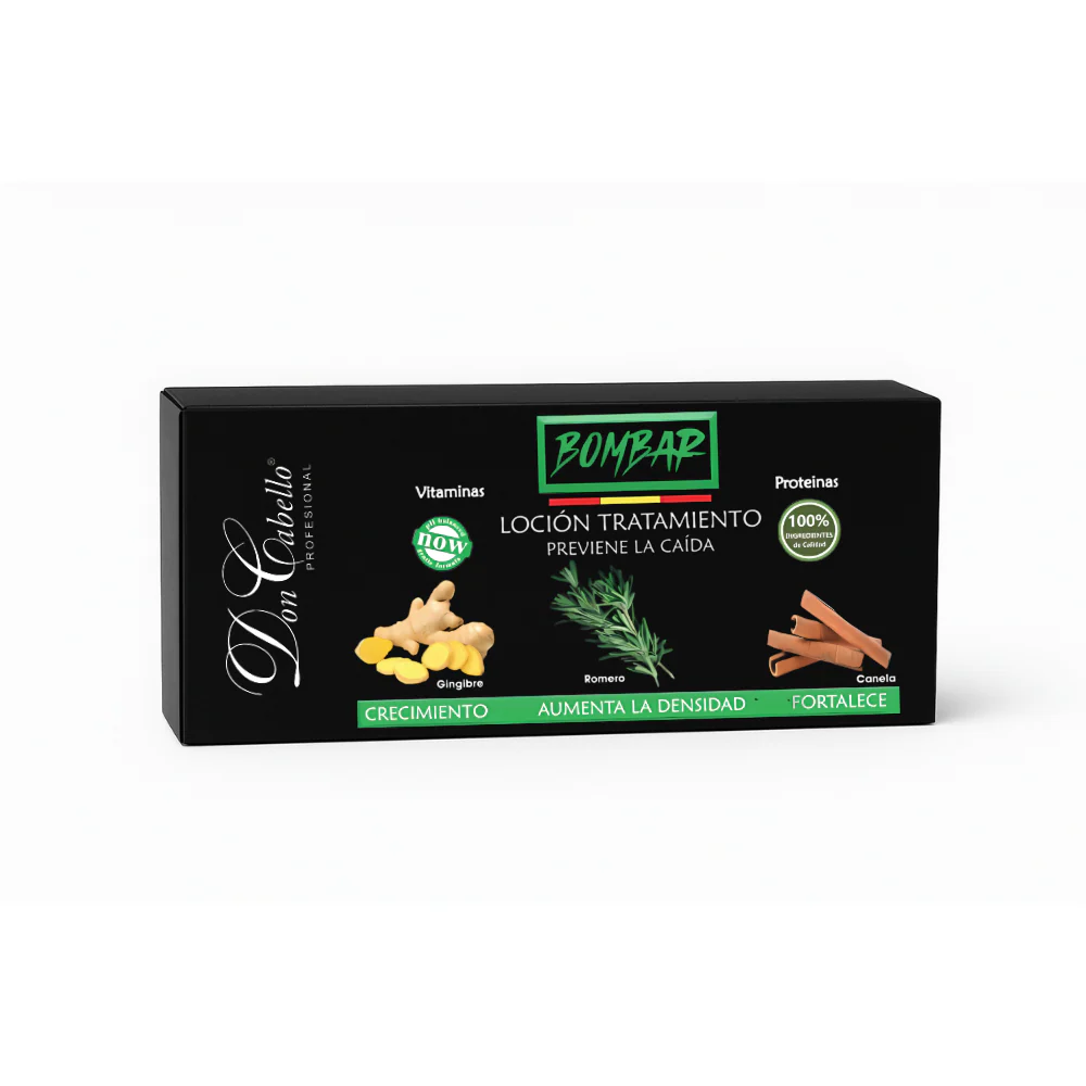La loción capilar Don Cabello Bombar ofrece un tratamiento intensivo en formato de 10 ampollas monodosis de 10 ml cada una. Está formulada para ayudar a fortalecer el cabello, mejorar su apariencia y aportar mayor densidad desde la raíz.