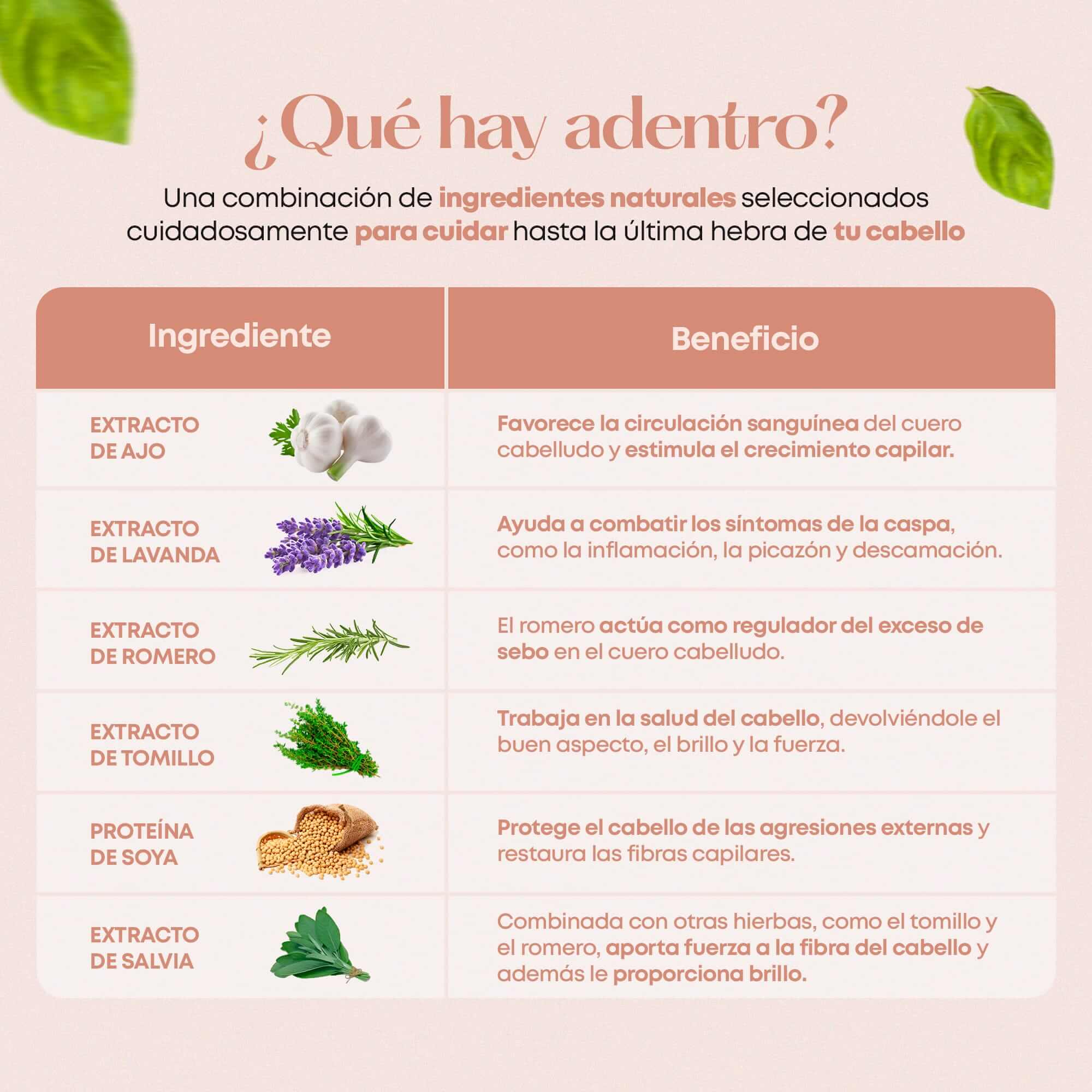 vegetales hidratan y nutren la estructura capilar, aportando Vitaminas y sales minerales al cabello que lo fortalecen.