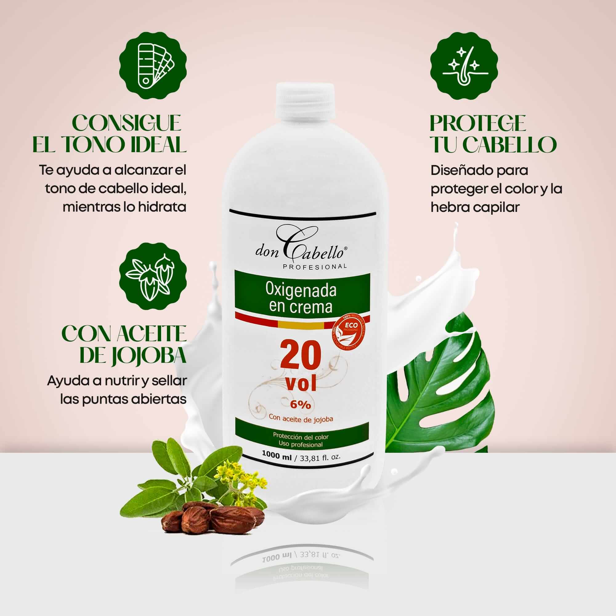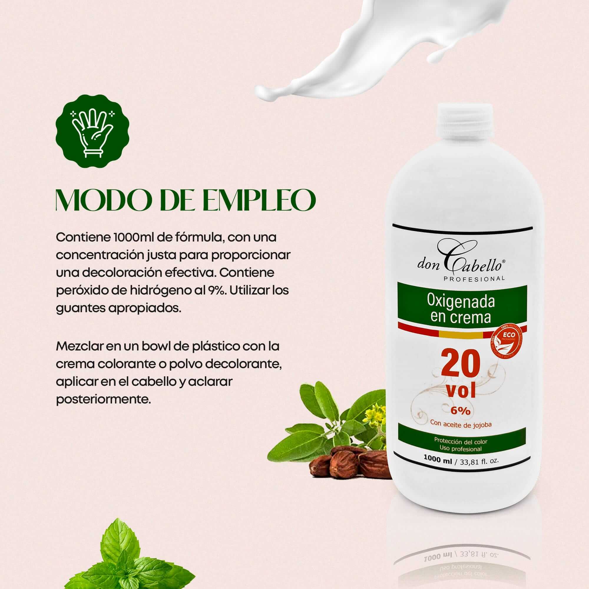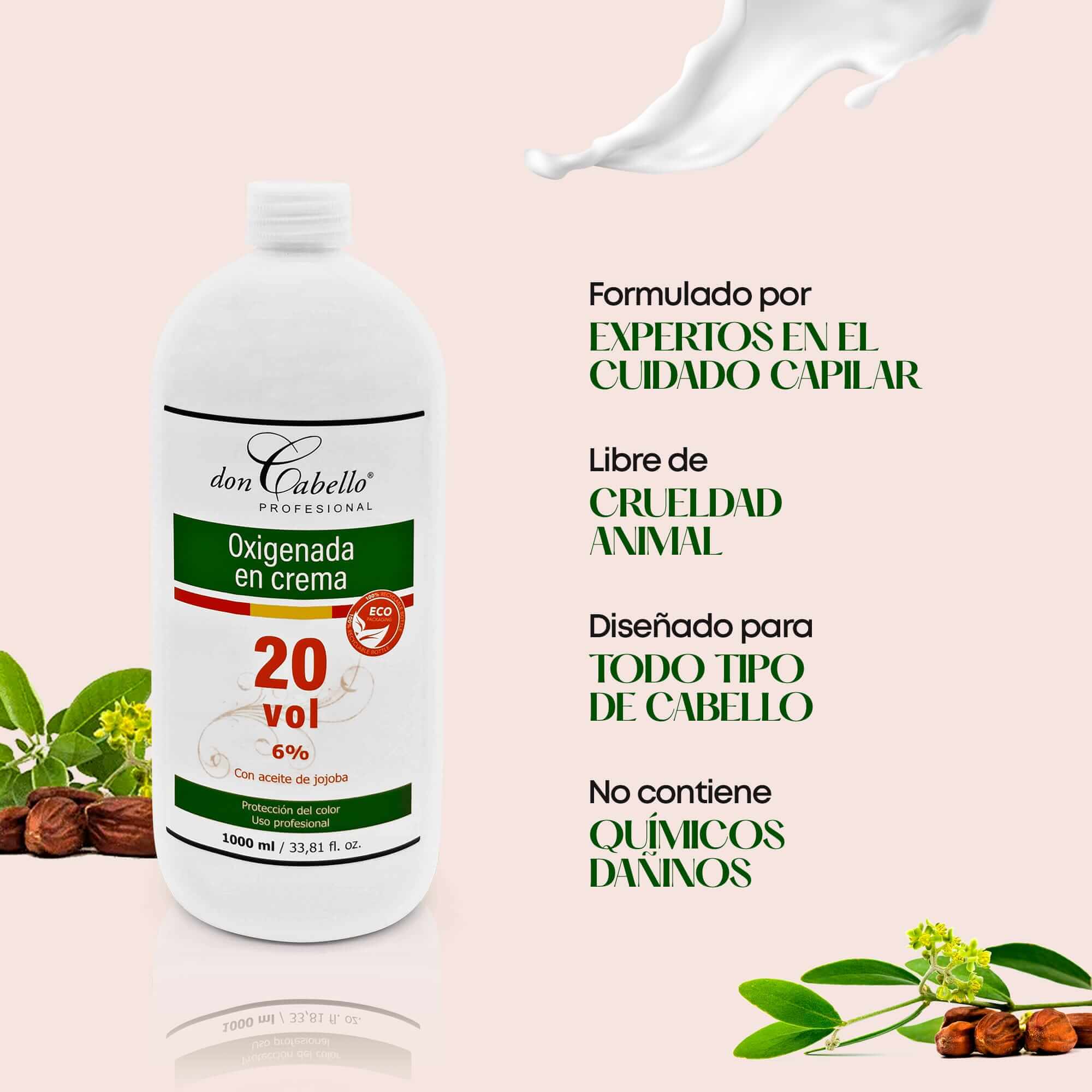 PROTEGE TU CABELLO: Creado por profesionales del sector, la oxigenada en crema 20 vol. de Don Cabello está diseñada para la coloración del cabello al mezclarse con la crema colorante en teñidos permanentes, siendo compatible con cualquier tipo de tintes en crema. Con una textura cremosa y sedosa que decolora el cabello de manera eficaz