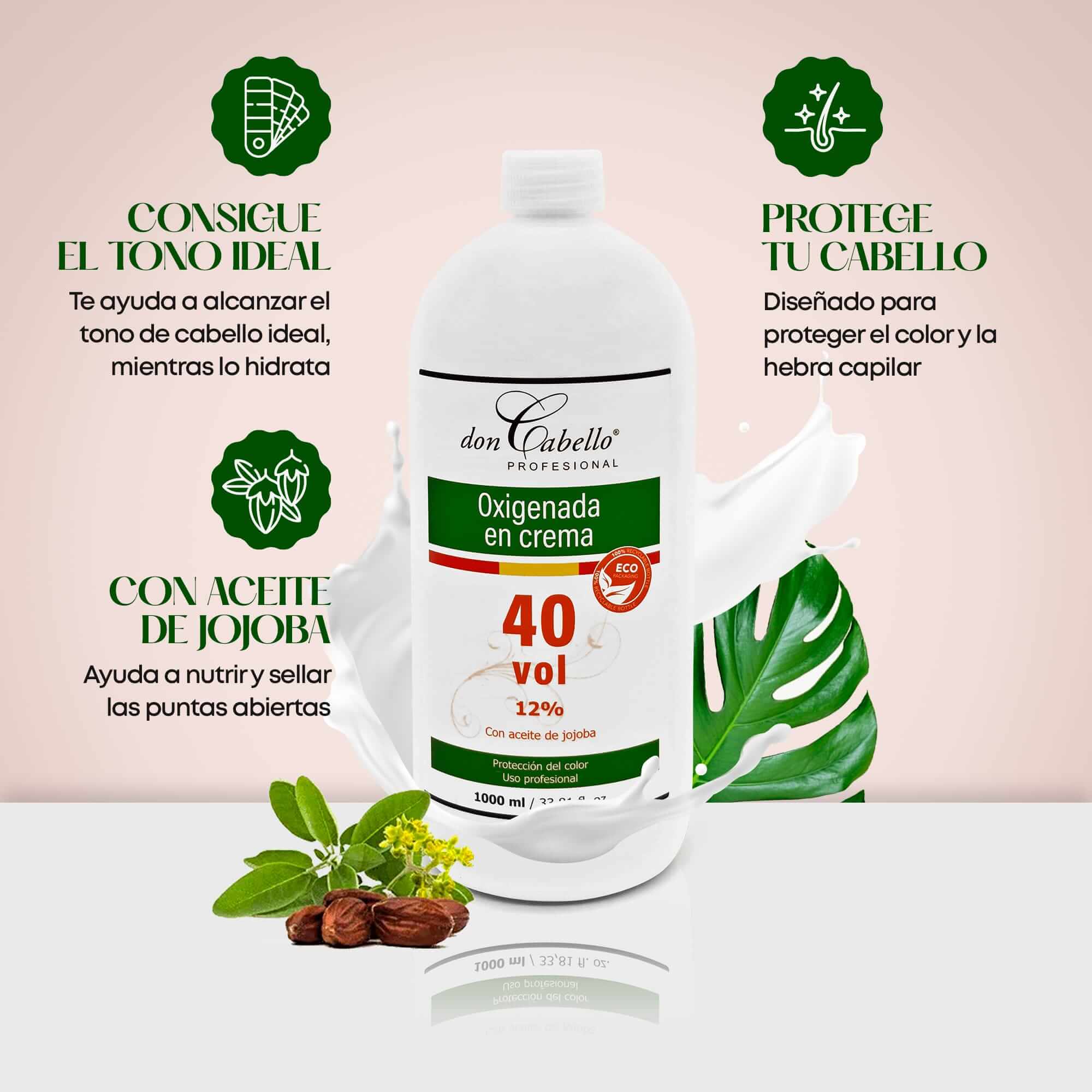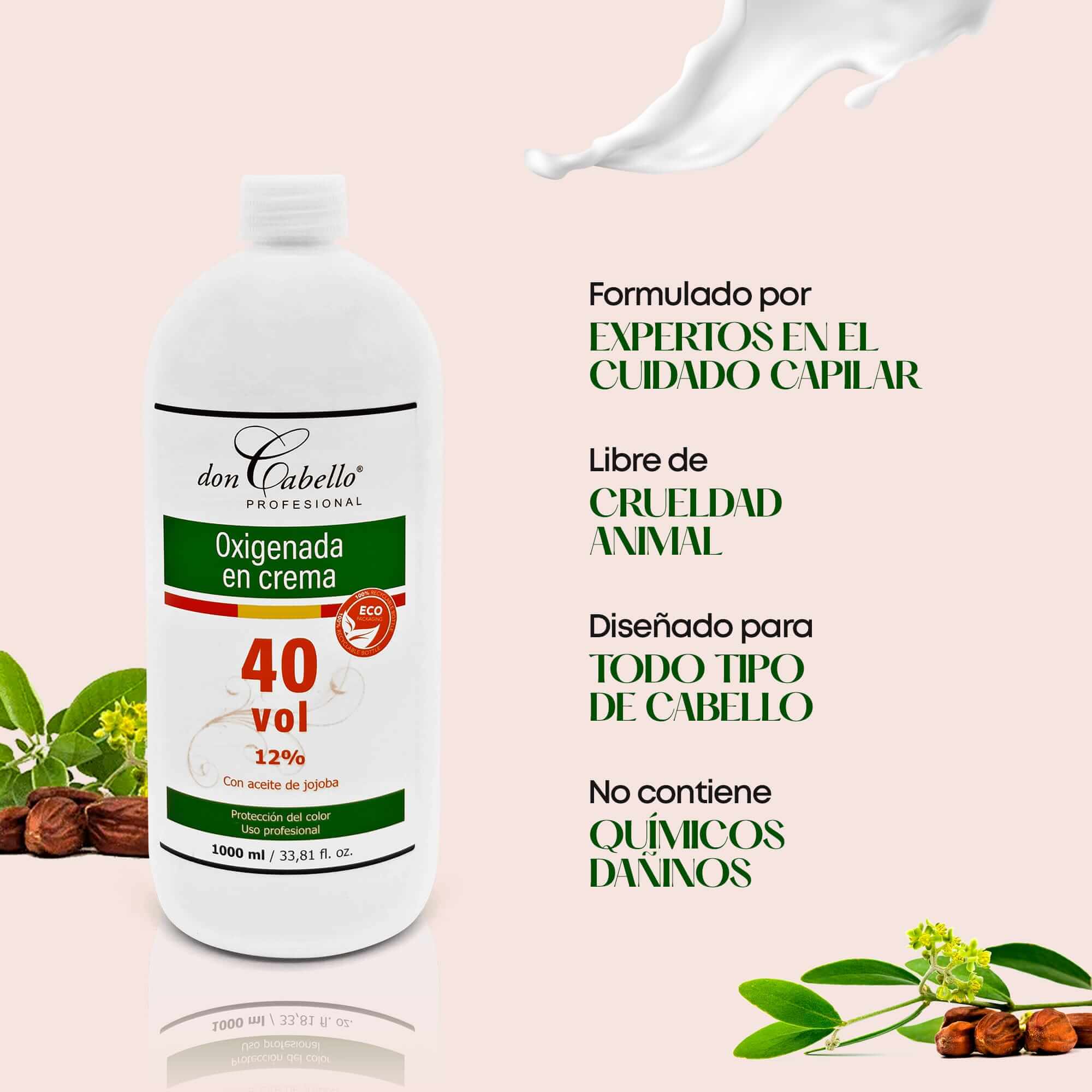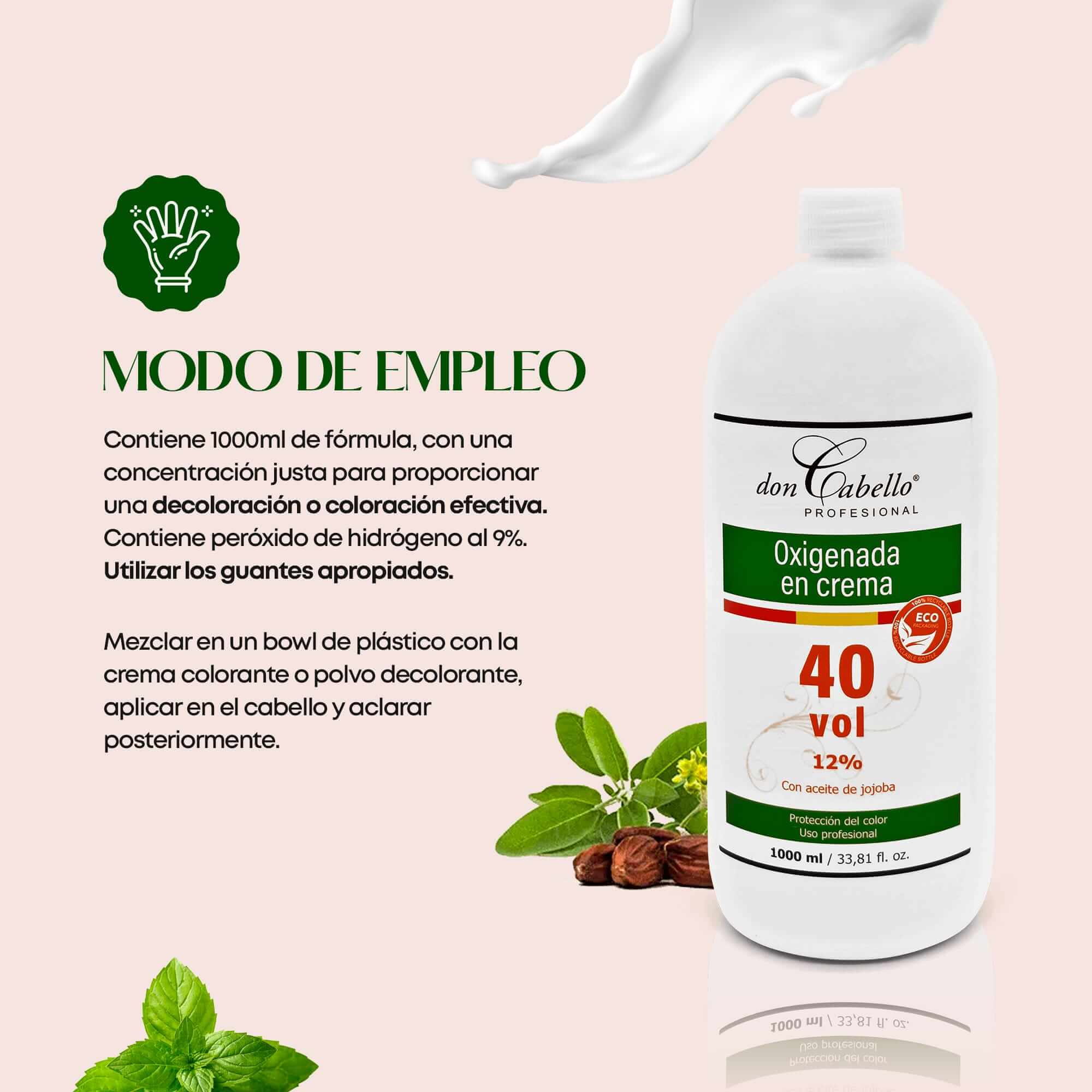 PROTEGE TU CABELLO: Creado por profesionales del sector, la oxigenada en crema 40 vol. de Don Cabello está diseñada para la coloración del cabello al mezclarse con la crema colorante en teñidos permanentes, siendo compatible con cualquier tipo de tintes en crema. Con una textura cremosa y sedosa que decolora el cabello de manera eficaz
