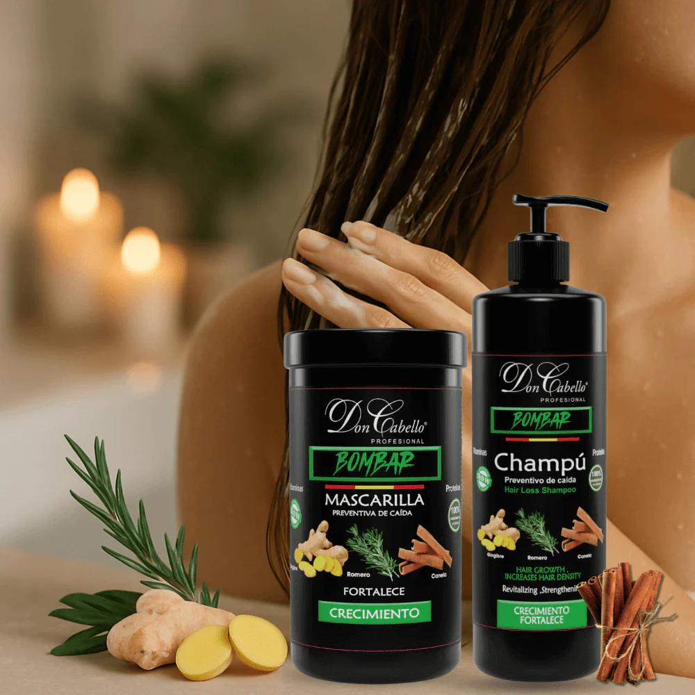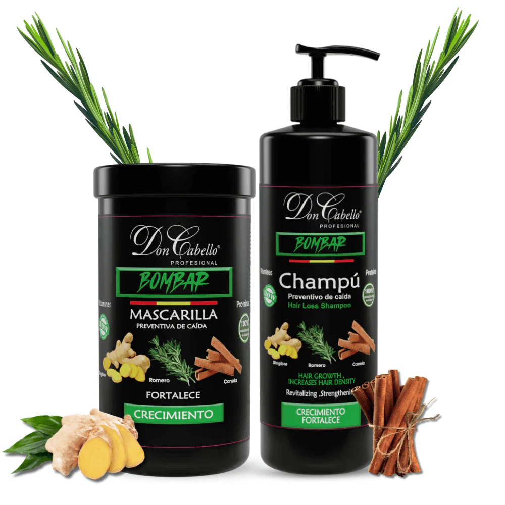 Este pack capilar fortalecedor de Don Cabello está formulado para cuidar el cabello desde la raíz hasta las puntas. Contiene un champú limpiador y una mascarilla nutritiva enriquecidos con romero, jengibre y canela, ingredientes conocidos por sus propiedades revitalizantes.