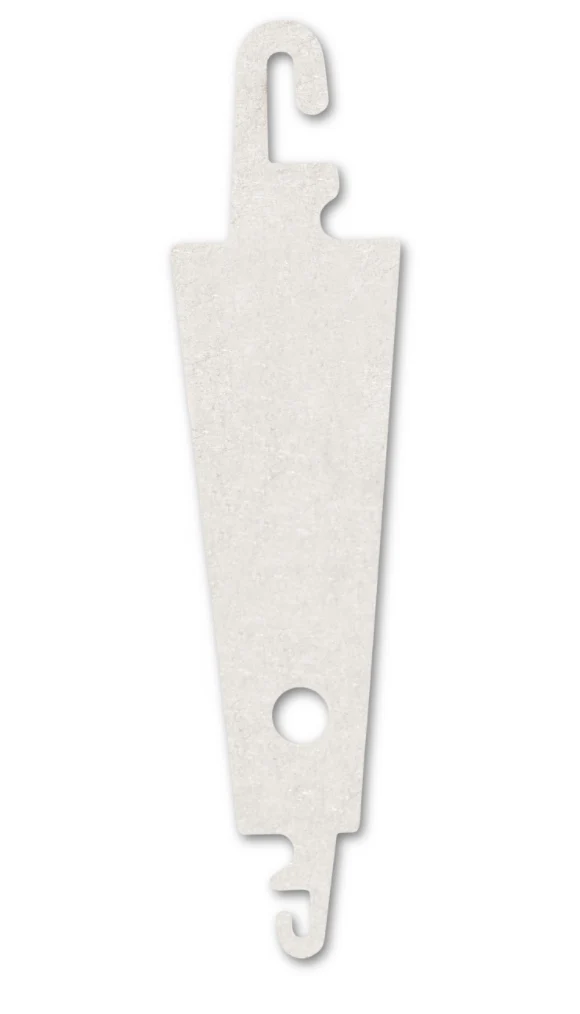 Este enhebrador para agujas de bordar es una pieza plana de acero inoxidable provista de dos ganchos de diferentes tamaños para ser usados con distintas agujas e hilos de bordar.