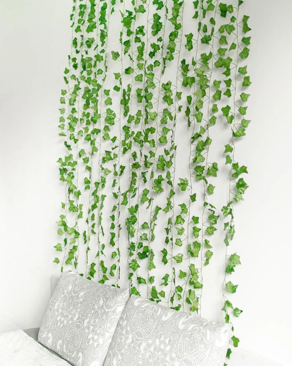 Enredadera artificial decorativa genial para combinar con una tira de luces y decorar pared de casa. Cada unidad contiene 12 tiras de enredadera de 2 metros de longitud cada una.
