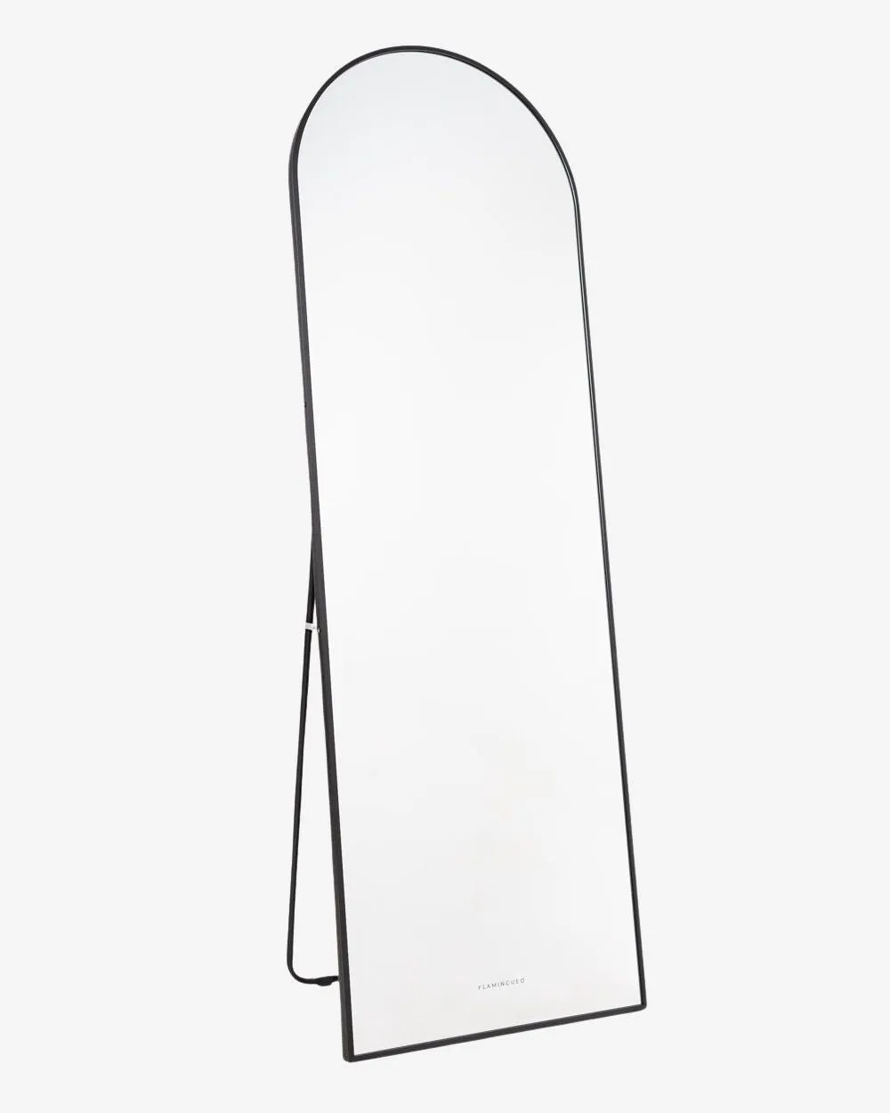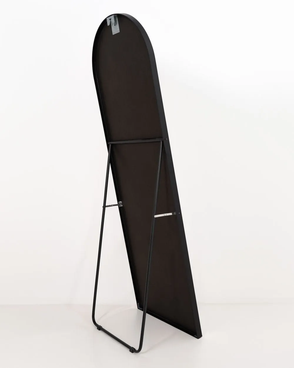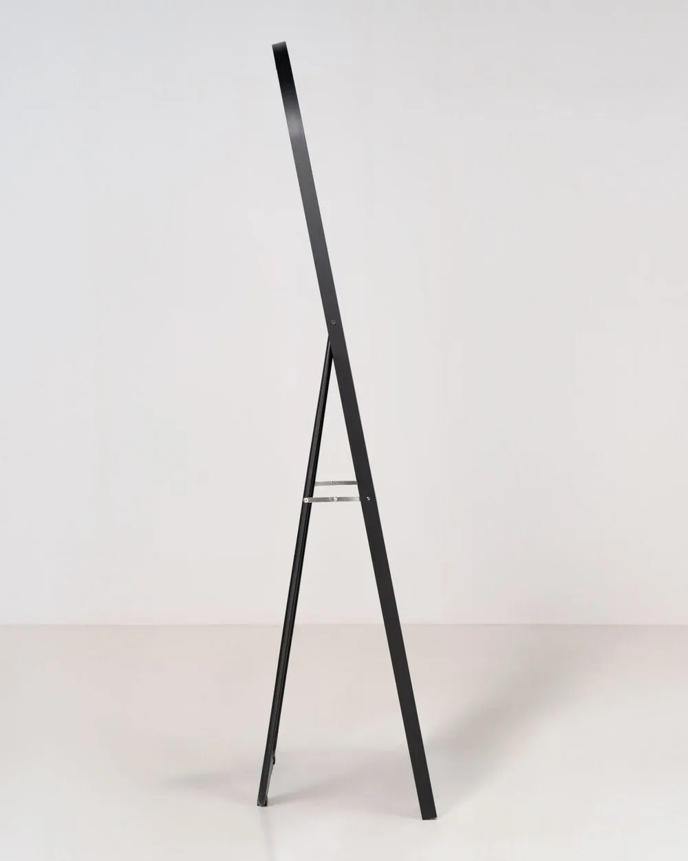 Espejo multi posición con marco de aluminio negro. Su diseño simple y moderno permite poder combinarlo con cualquier estilo de decoración. Dispone de un gancho trasero para poder colgarlo en la pared, o si lo prefieres puedes apoyarlo en el suelo sobre su propia pata retráctil.