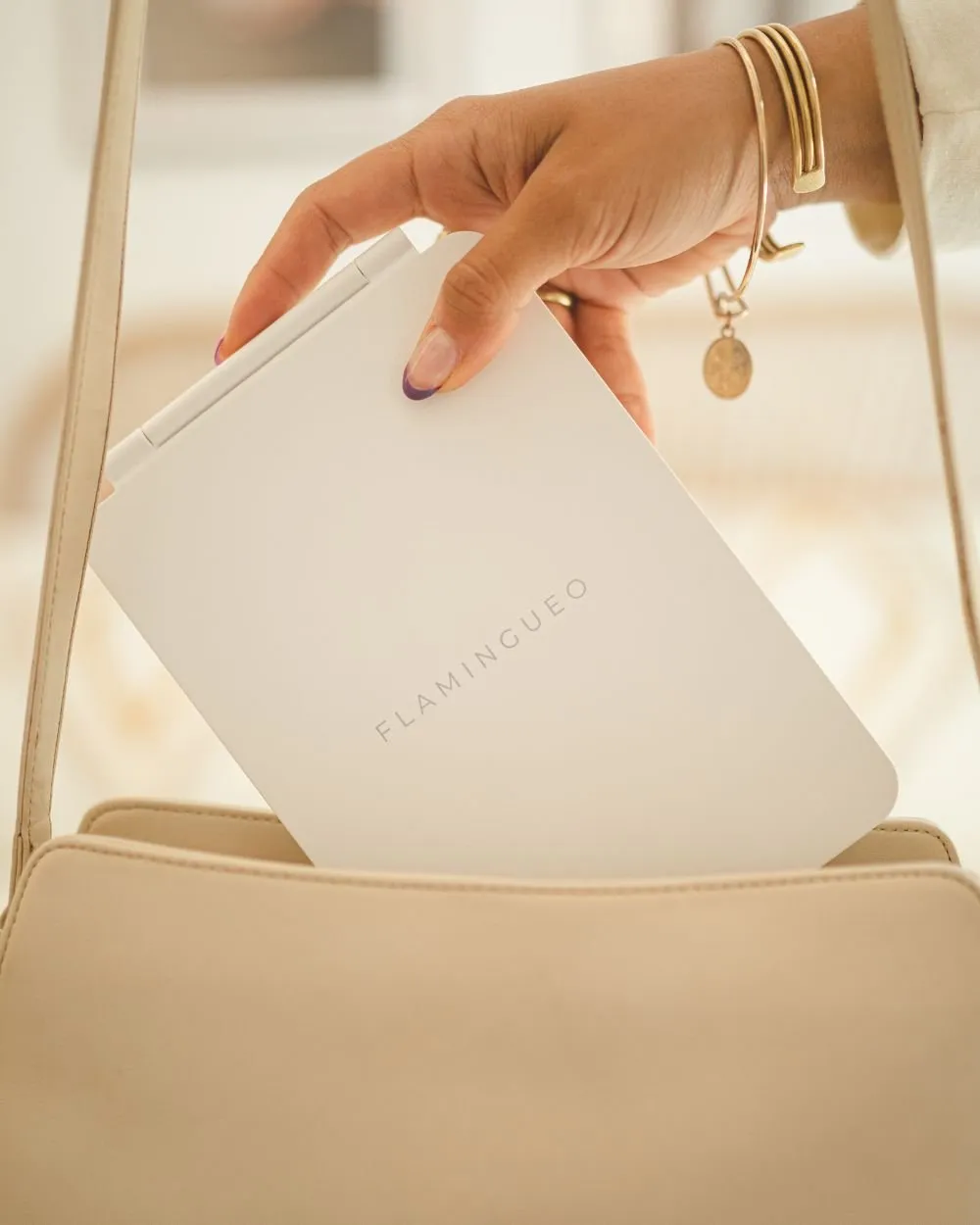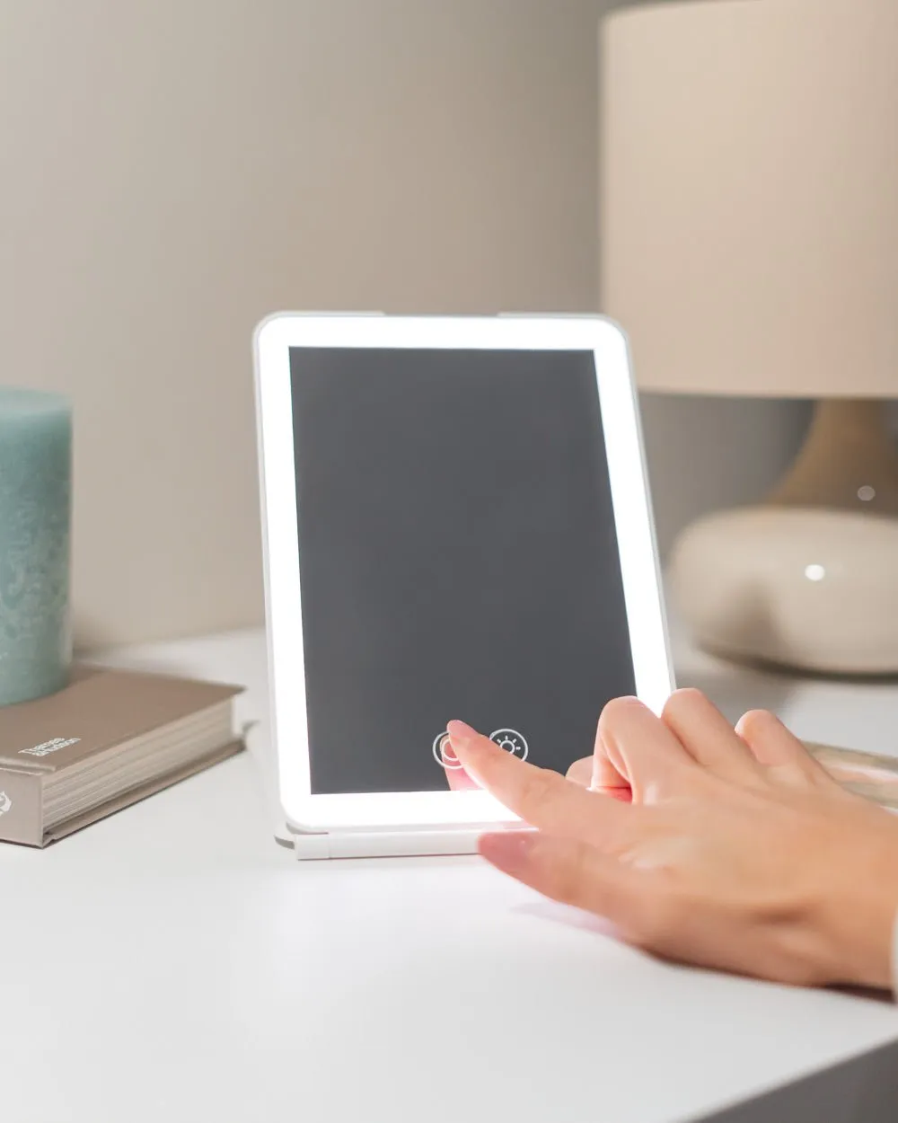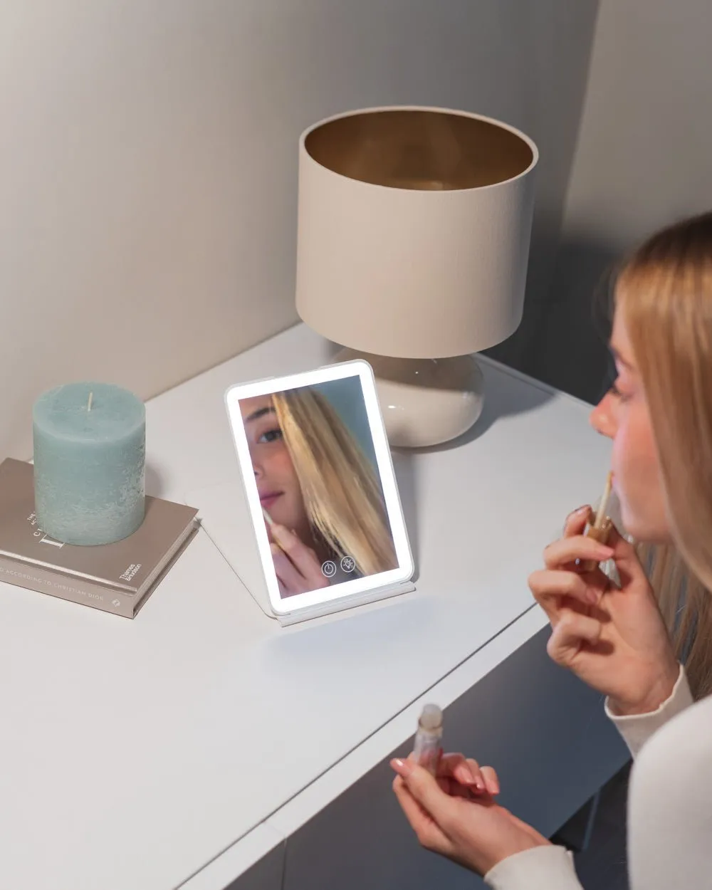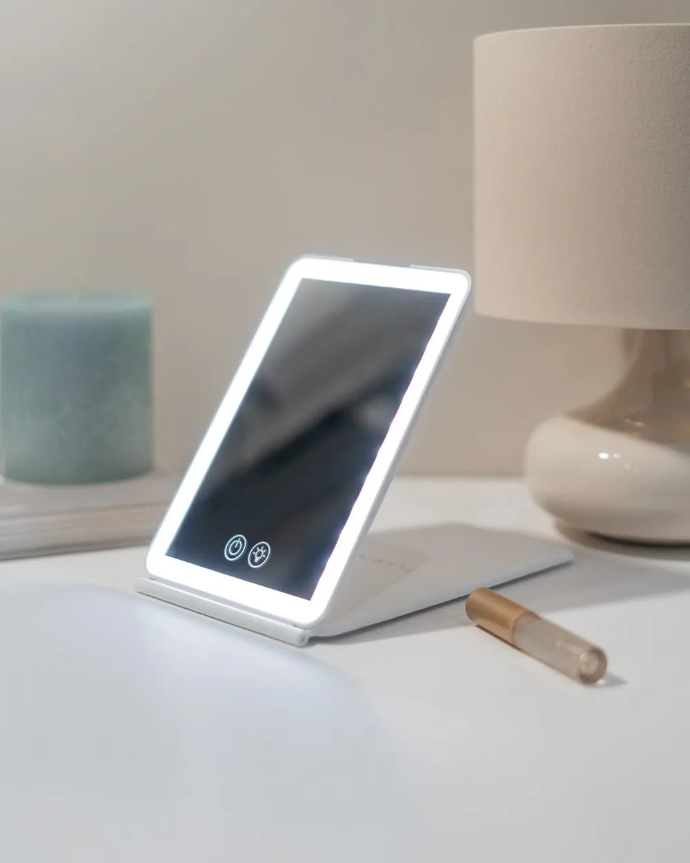 AIRE es el espejo viaje con luz perfecto para llevar contigo a todas partes. Elige entre las tres intensidades y tonos de luz a través del control táctil. Ligero y compacto ideal para viajes.
