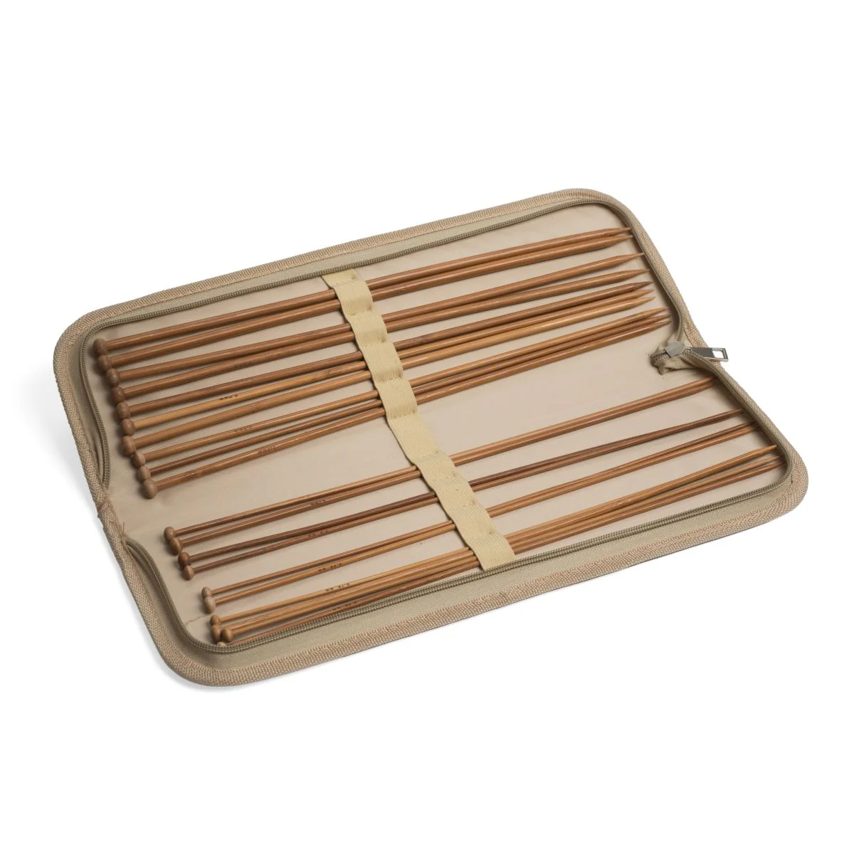 Palillos en estuche forrado en género que incluye 10 pares desde el Nº 2,75 al 6,5. Medidas 38.6 x 13.8 x 3.6 cm
