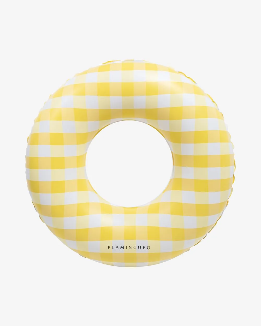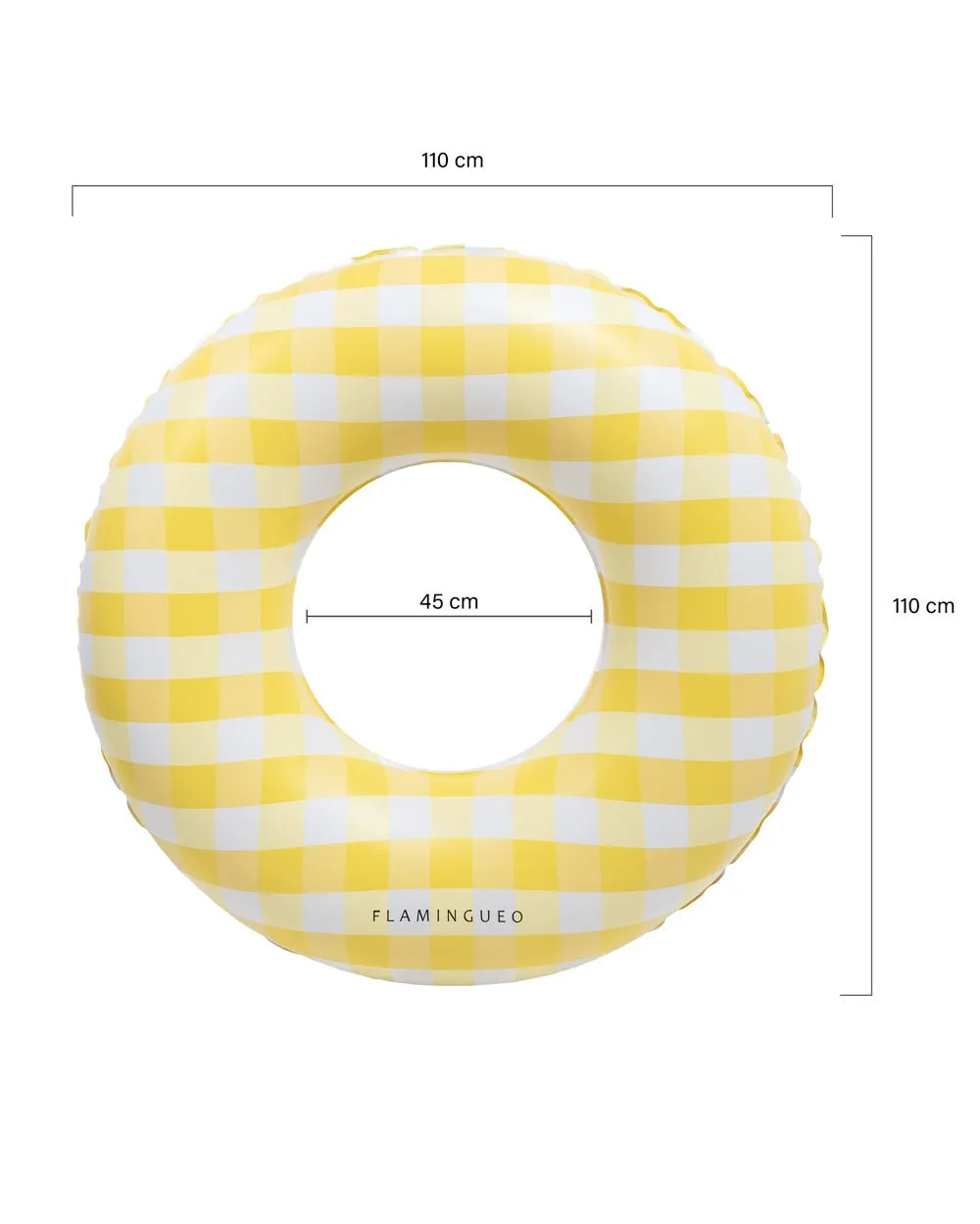 Prepárate para el verano con nuestro nuevo flotador donut diseño vichy en color amarillo. El accesorio perfecto para compartir con amigos en la playa o en la piscina.