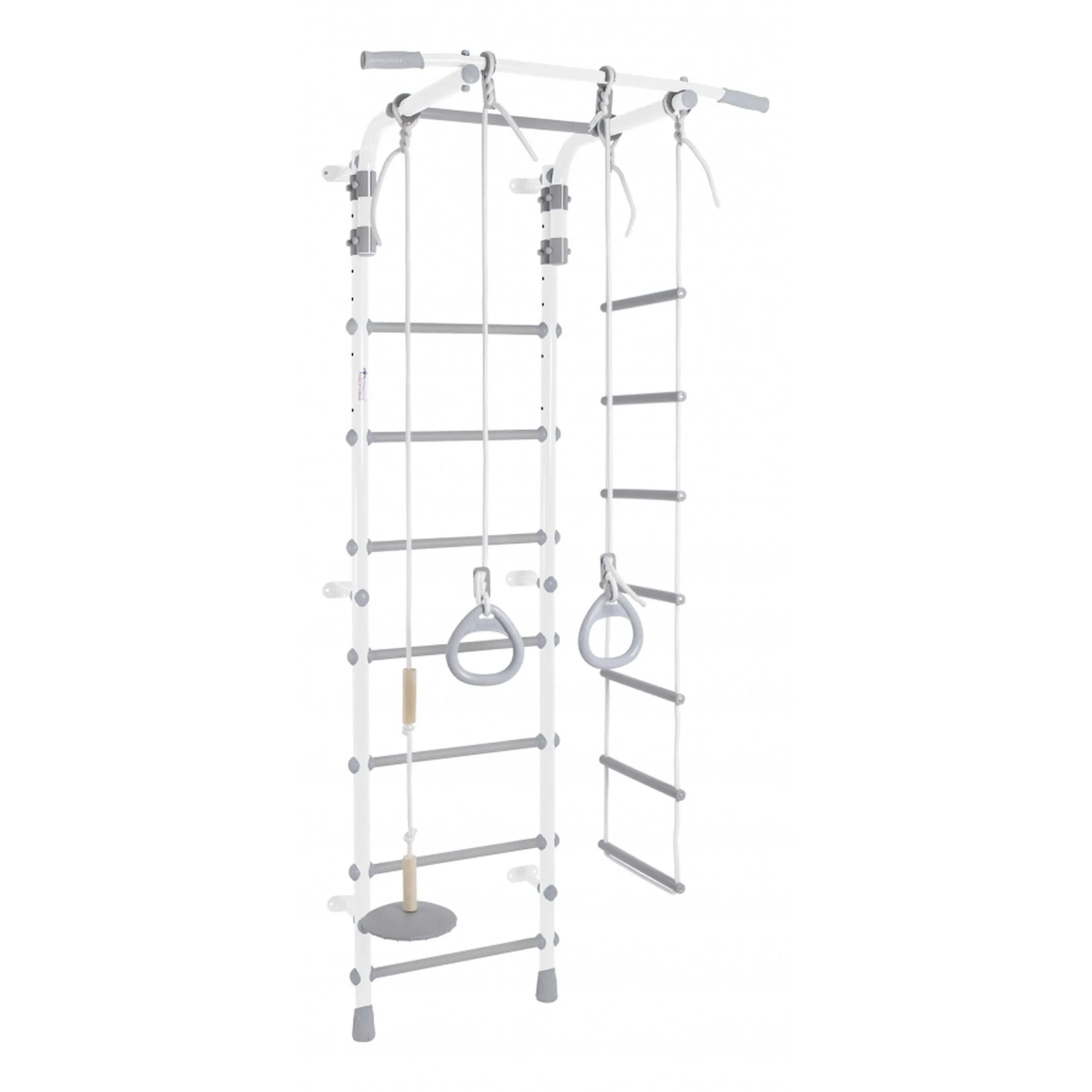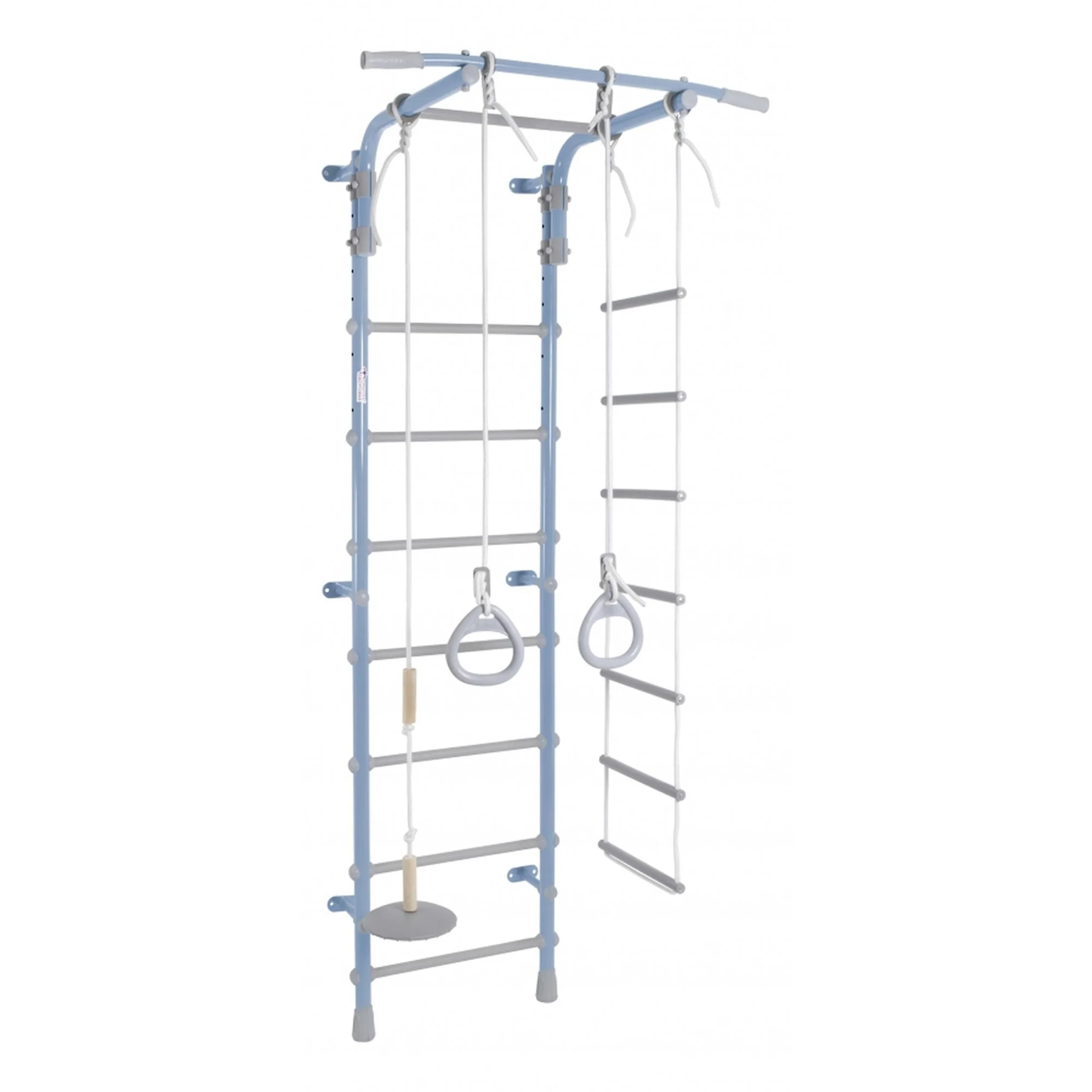 En el sistema Pastel2, se utilizan barras de pared con una barra horizontal, una escalera de cuerda, un bungee y anillos: