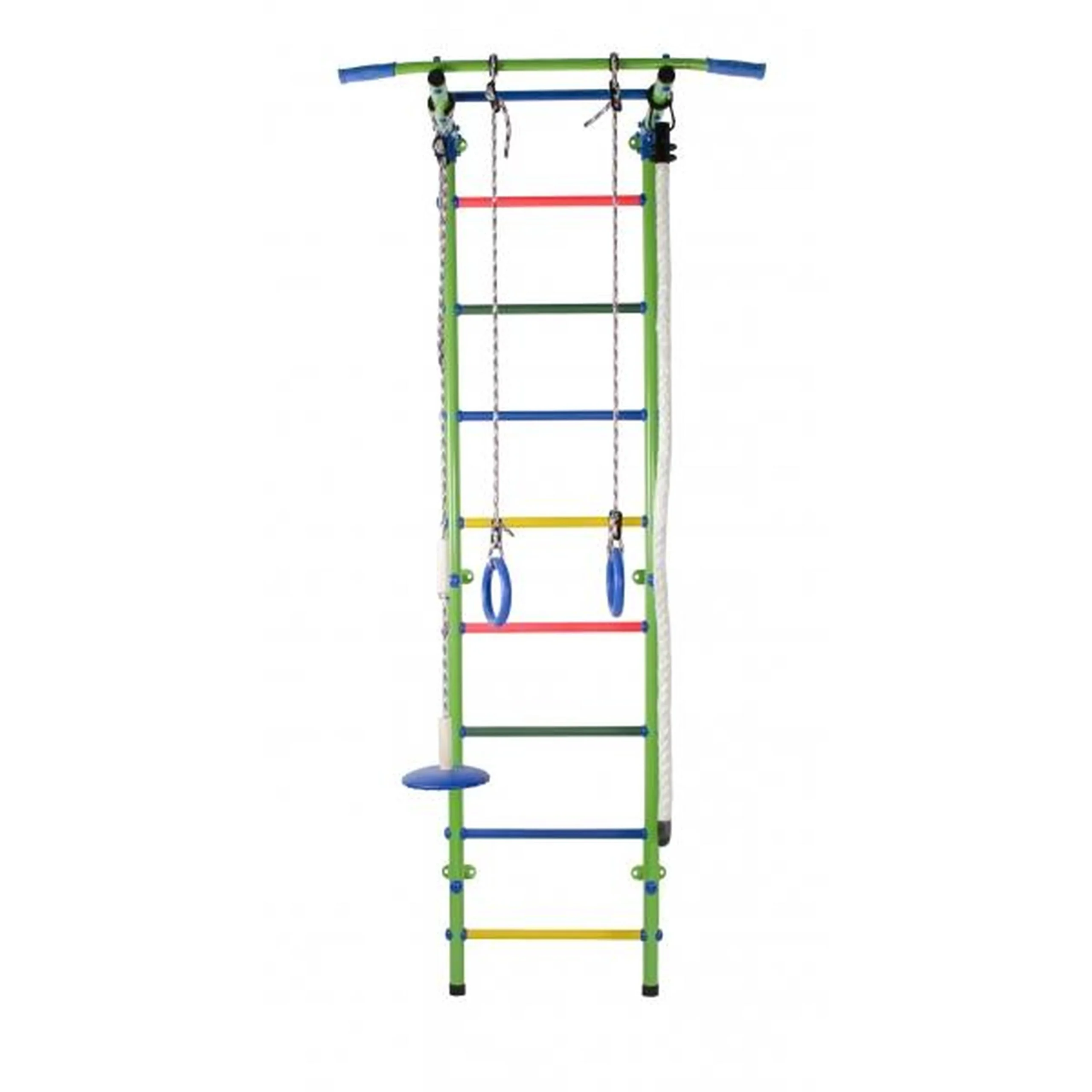 Gimnasio Infantil de Pared con Espaldera, Anillas, y Columpio START1 217*63*5,25 cm Azul Claro- Arco Iris