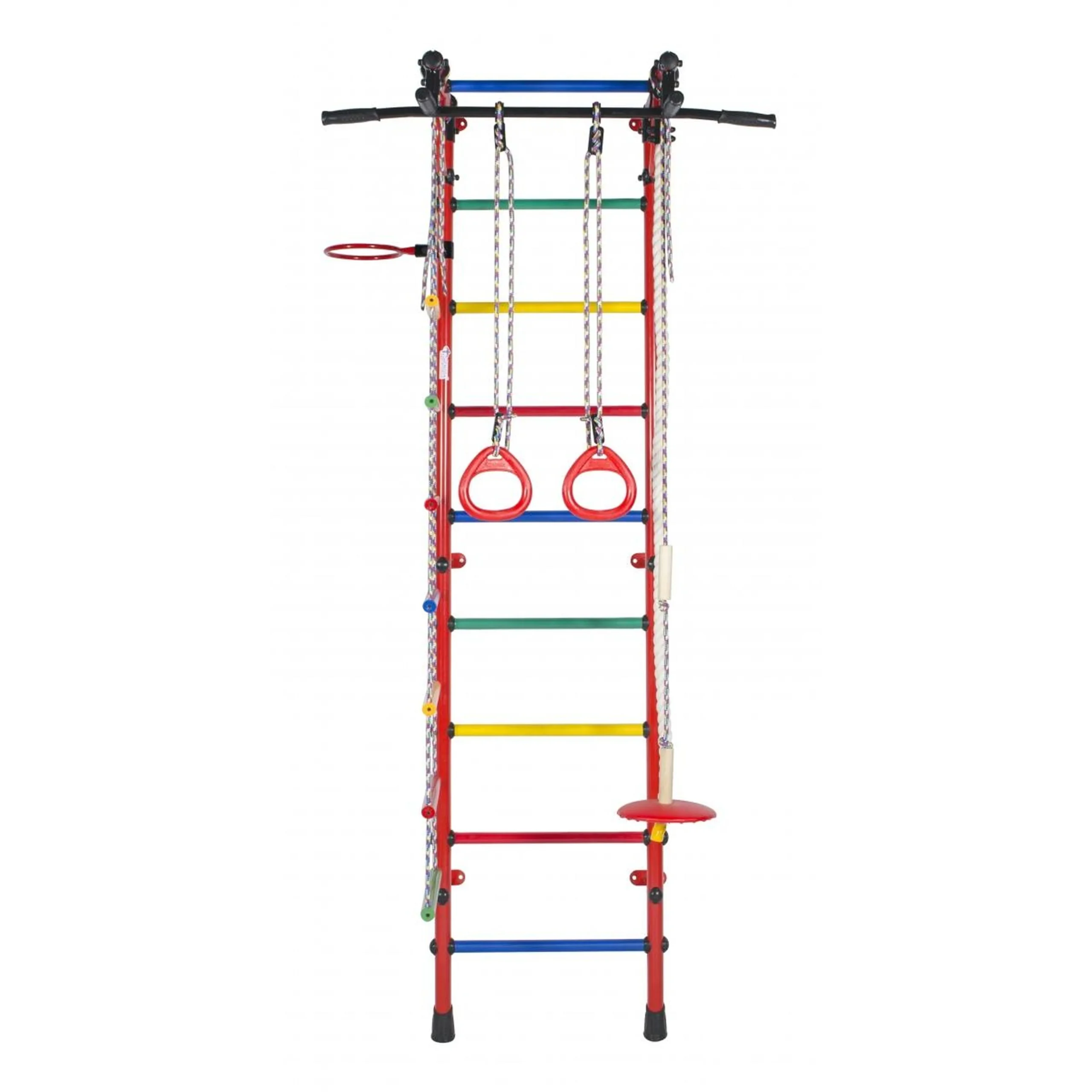 Gimnasio Infantil de Pared con Espaldera, Barra de Dominadas, Anillas, Escalera y Columpio GAMMA 230*64*52 cm