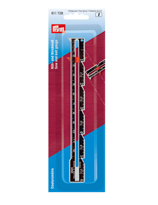 Regla guia de costura y tejido ajustable. Se usa directo en la máquina de coser o mientras se teje a palillo o crochet. La regla cuenta con espaciador. hecha de metal. Gran ayuda para marcar costuras y ojales.