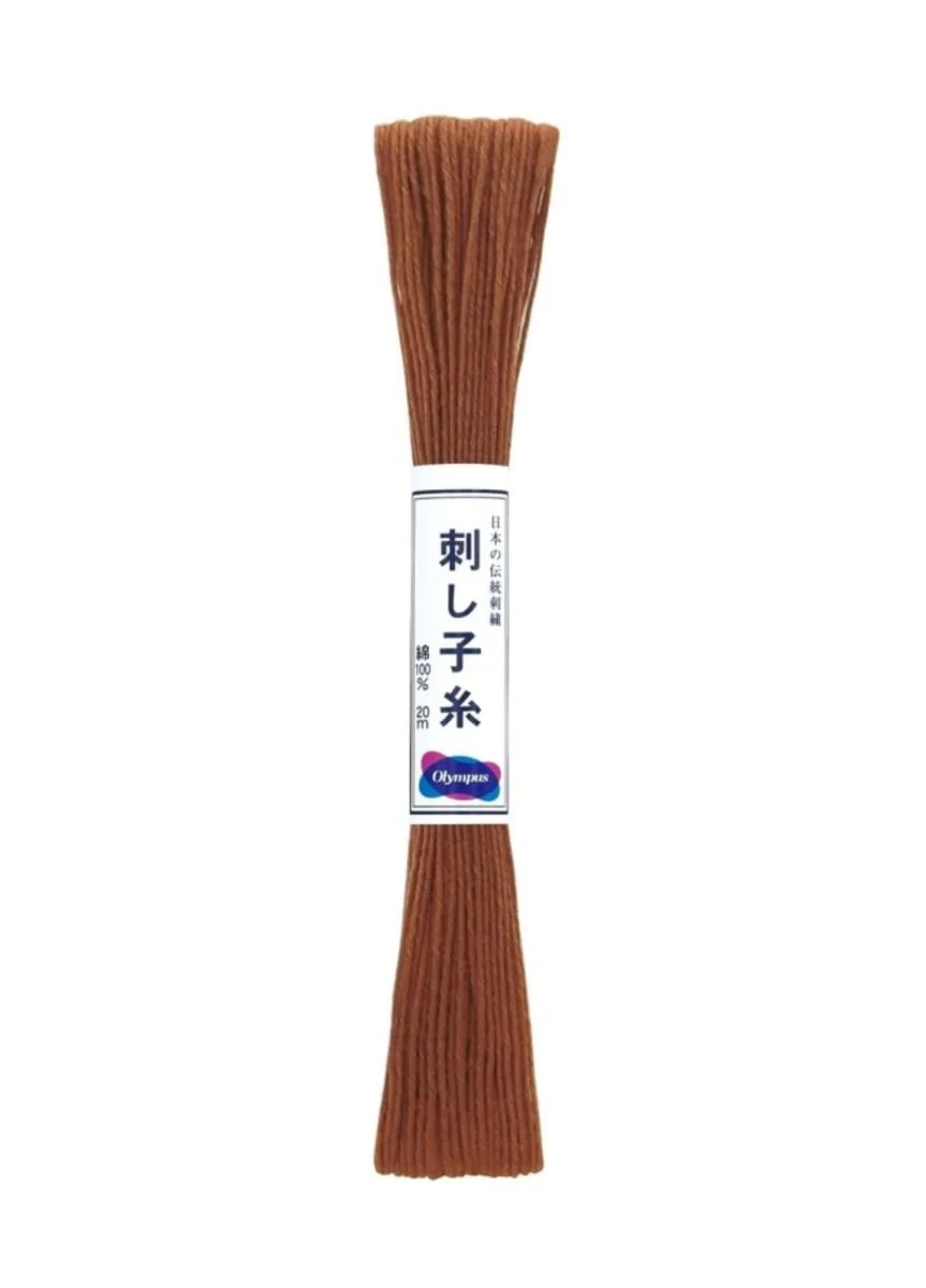 El hilo de bordar para sashiko, técnica milenaria japonesa creada para remendar las vestimentas de los más pobres, tiene que ser resistente pero fino. Es un algodón 100% torcido, mate o brillante. Este hilo no tiene brillo y viene en madejas de 20 m.