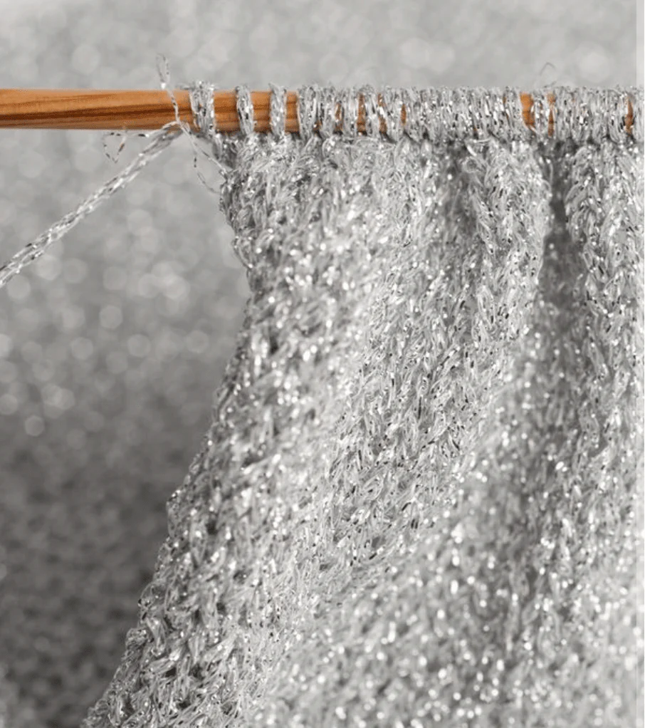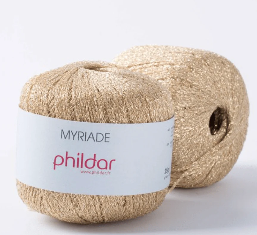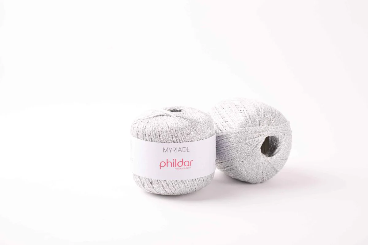 Myriade es una fibra metalizada, brillante y suave. Se puede usar para bordar o se puede mezclar con otras lanas para dar un efecto de brillo a nuestros proyectos.