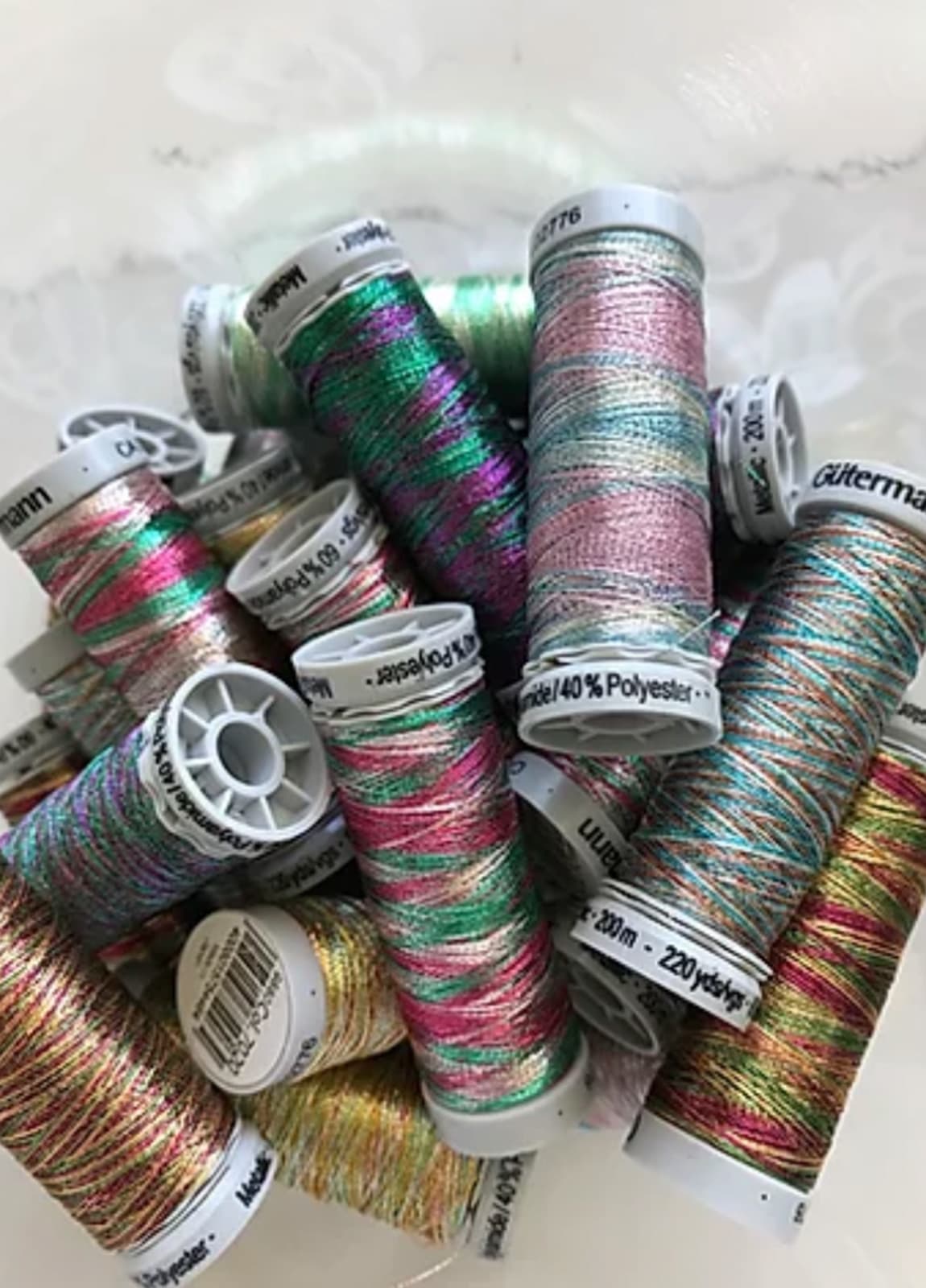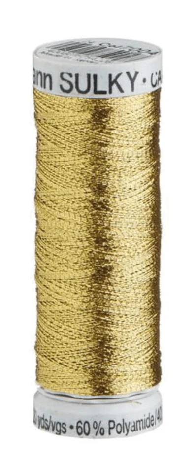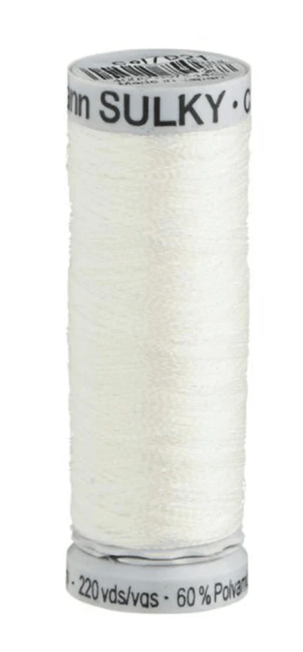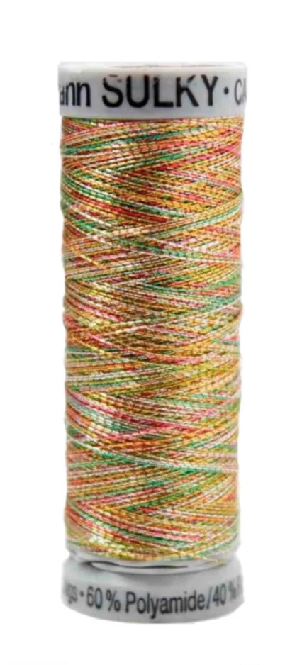 Bobina de 200 m de hilo metálico sulky, de alta calidad para tus bordados a máquina. Lisos y variegados, combinaciones para innovar en tus proyectos. Resiste el cloro, lavado a 45 grados. Rayón-viscosa.