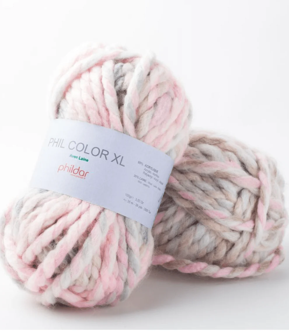Phil Color XL es una lana que se teje rápido, buena para empezar a tejer.