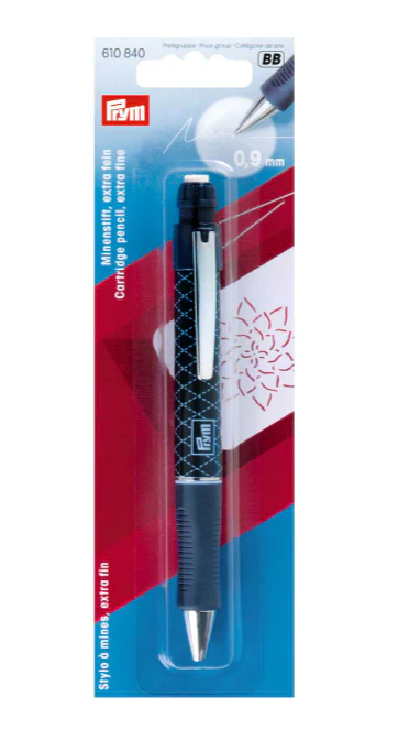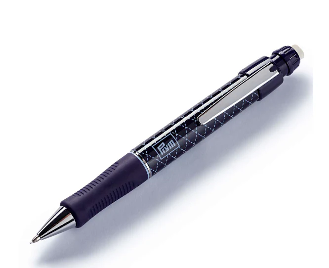 Lápiz marcador exclusivo de tela. Ideal para trabajo fino con stencils. Perfecto para marcar pespuntes, costuras difíciles y labores de patchwork. Su trazo fino y contínuo es especial para superficies oscuras. Las marcas desaparecen completamente con el lavado. Contiene 2 cartridges con mina blanca y uno con goma de borrar.