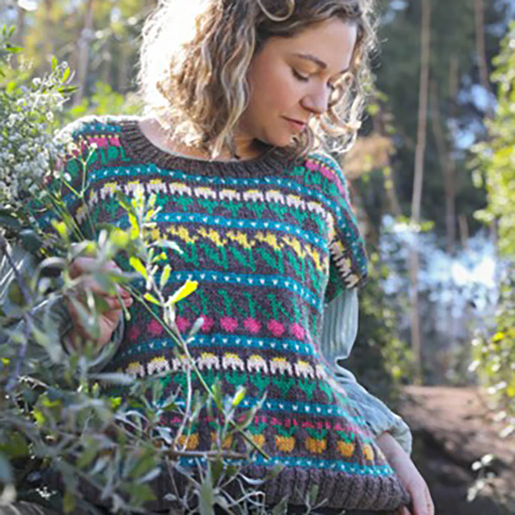 «En las 244 páginas de mi libro encontrarás diez patrones inéditos inspirados en lo botánico, con diseños basados en las hojas, flores y frutos de la naturaleza y plasmados con la técnica de tejido Jacquard. Además de eso el libro incluye un Proyecto Final, donde podrás mezclar todos los motivos de los distintos diseños del libro.