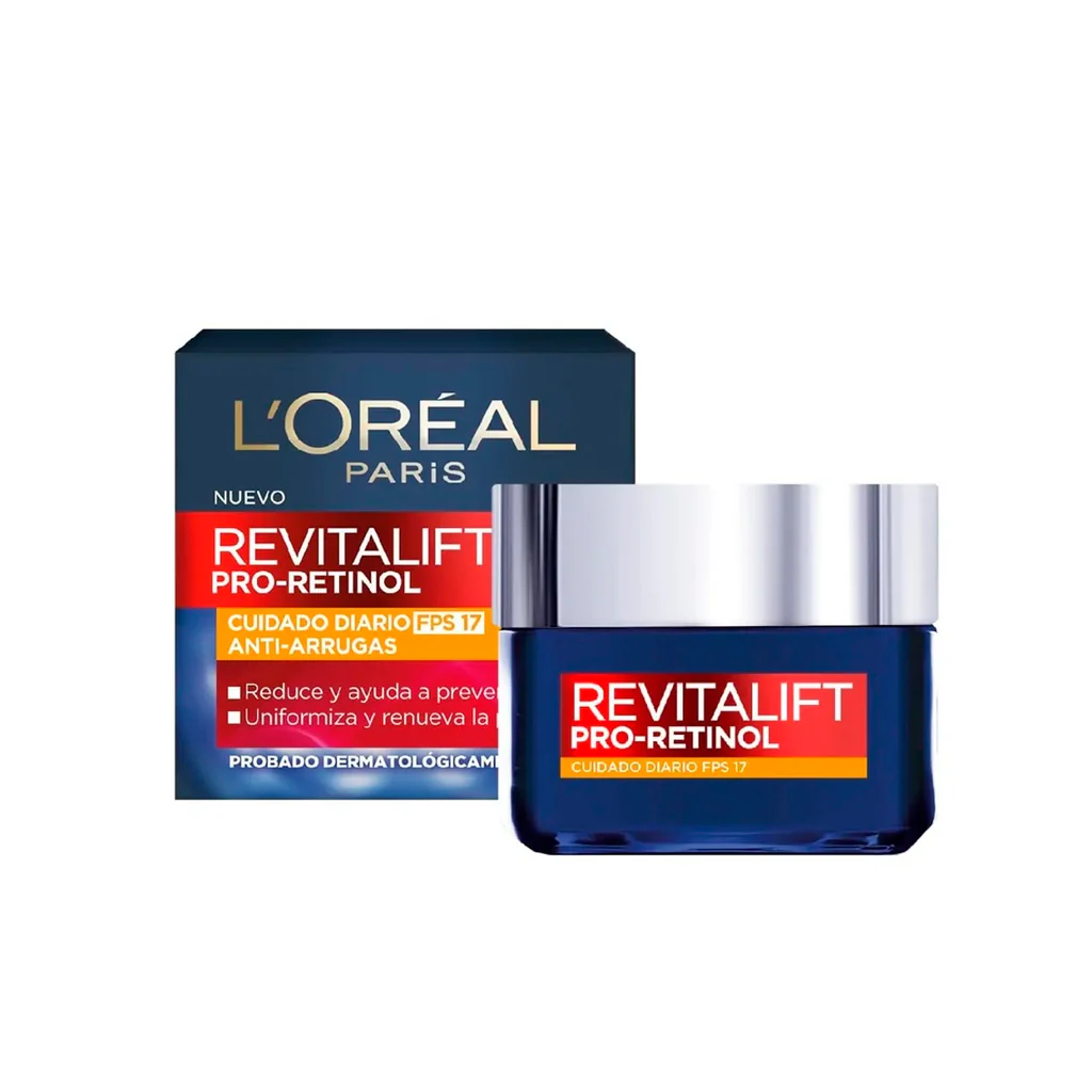 Nueva Crema Día Revitalift con PRO-RETINOL. Arrugas visiblemente reducidas en 8 semanas. El pro-retinol es un activo antiedad derivado del Retinol que puede ser usado durante el día. Esta crema estimula la producción del colágeno, hidrata y ayuda a proteger gracias a su factor de protección.