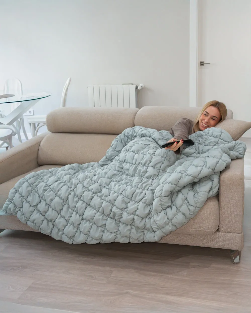 ¡Nuevos productos de textil para tu hogar! Manta color verde acolchada en forma de cuadros, 100% poliéster. Es una manta suave y tierna, perfecta para las tardes de peli y manta o para las noches más frías.