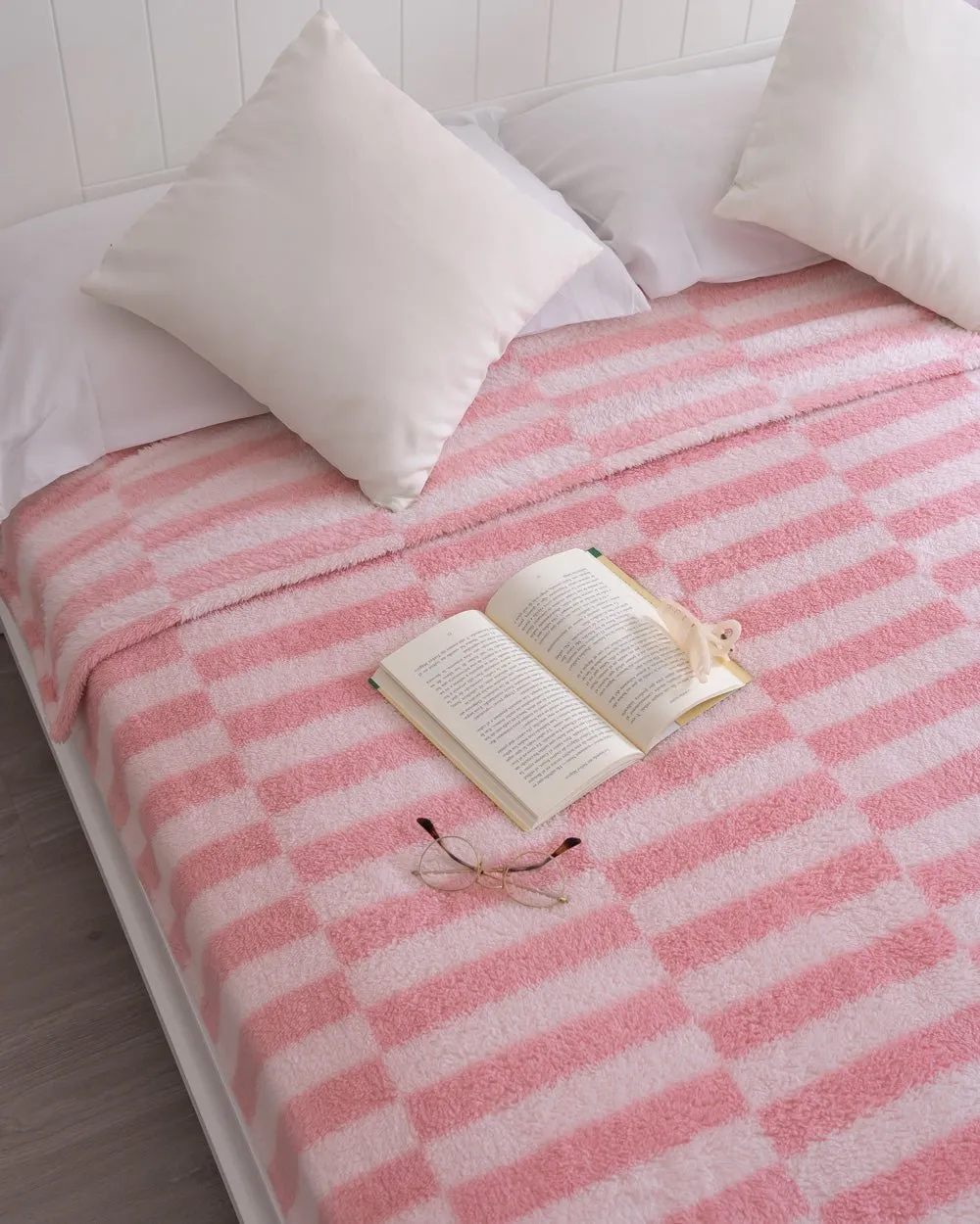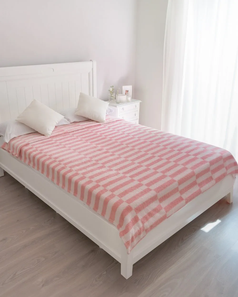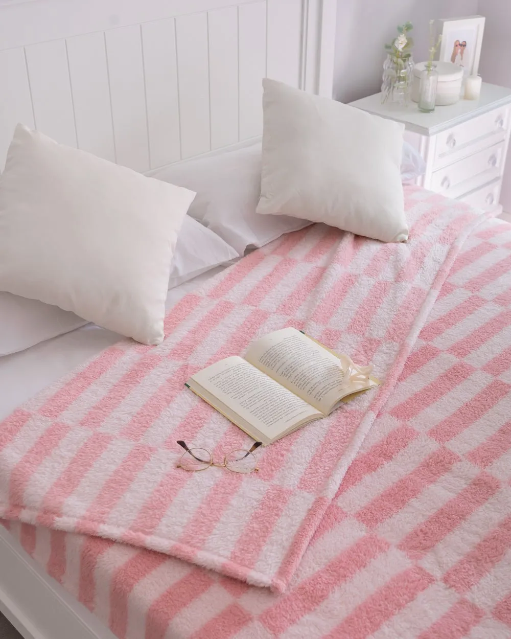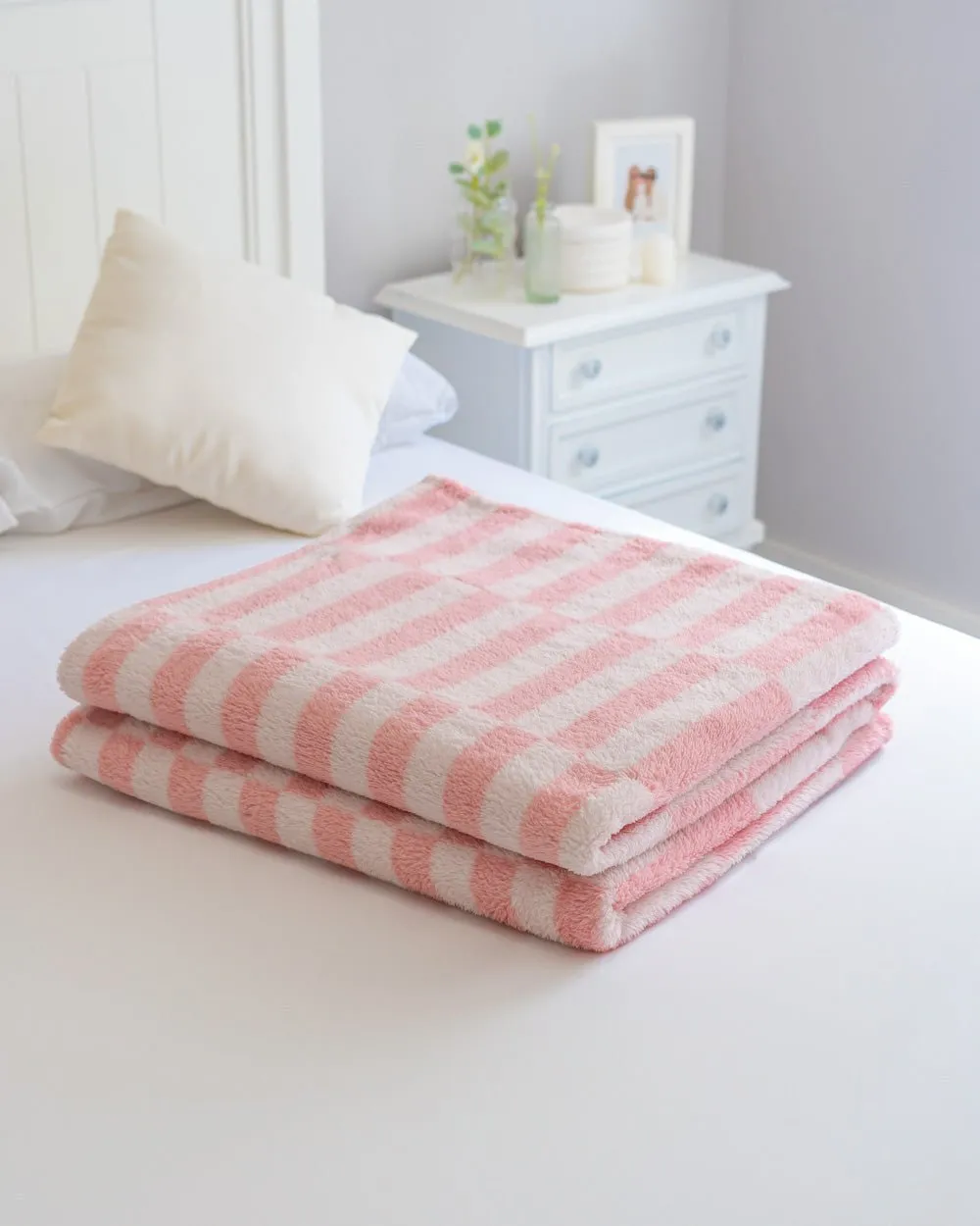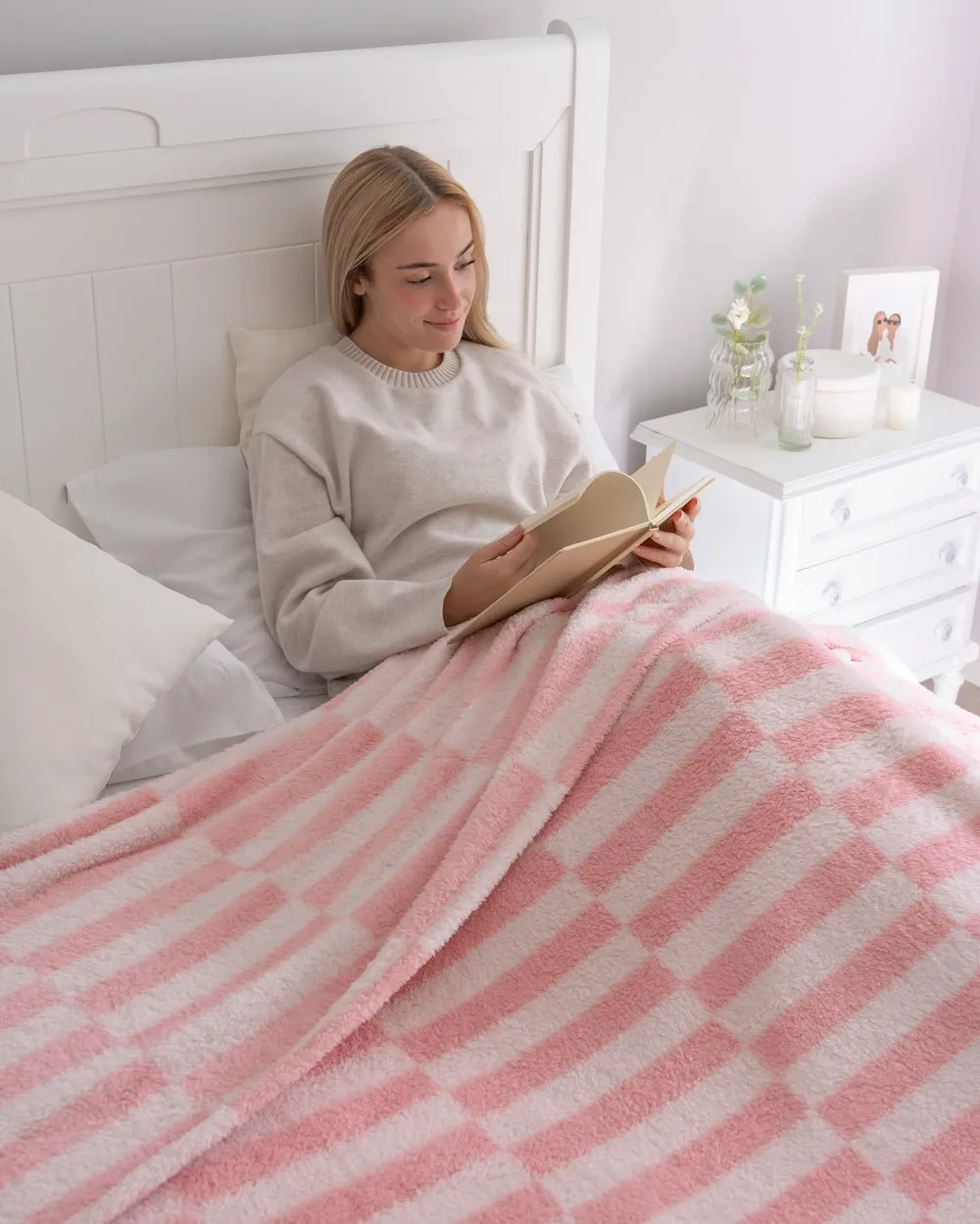 ¡Nuevos productos de textil para tu hogar! Manta color rosa extra grande y print de cuadros, 100% poliéster. Es una manta suave y tierna, perfecta para las tardes de peli y manta o para las noches más frías.