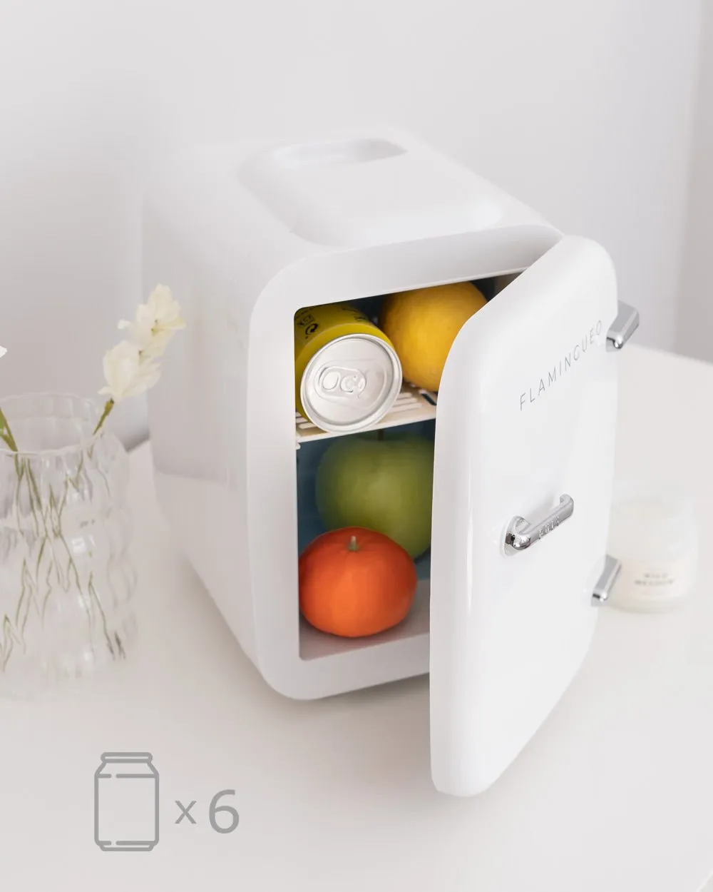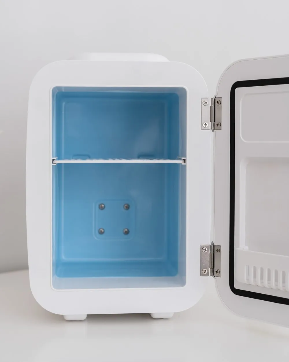 La mini nevera de 4 litros blanca combina un diseño retro y compacto perfecta para almacenar cosméticos, bebidas y pequeños snacks. Función de frío y calor. Sus baldas interiores extraíbles son perfectas para almacenar todos tus productos de belleza en diferentes formatos.