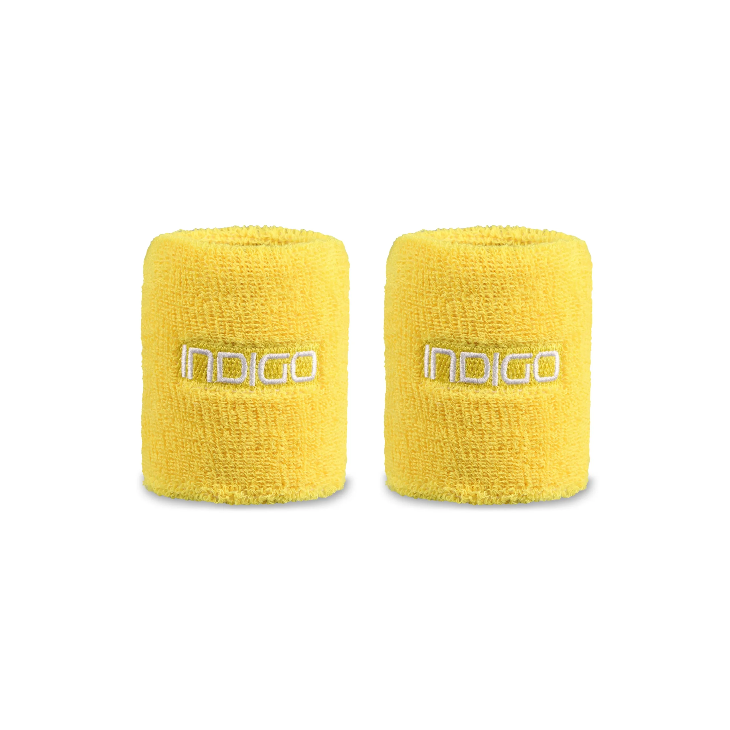 Muñequera de rizo de la marca INDIGO, confeccionada en algodón, poliamida y elastano, Vienen 2 unidades. Diseñado para fijar la mano en la articulación de la muñeca al realizar cierto tipo de ejercicios.