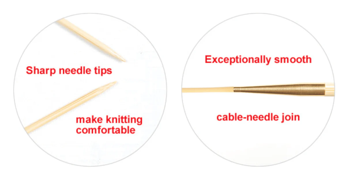 Palillos con revolucionaria fijación rotatoria al palillo (swivel), el cable no se tuerce durante el tejido facilitando una grata experiencia al tejer. Unión excepcionalmente suave evita enganche del tejido. Estos palillos son un placer para tejer!