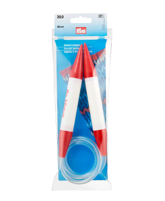 Palillos circulares para tejido en redondo y plano. Fácil deslizamiento y una punta de contorno perfecto para una suave inserción del punto. Palillos Nº 20.