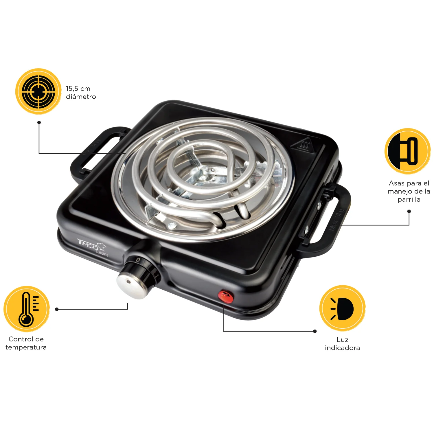 Parrilla Eléctrica 1 Quemador con Termostato Color Negro Timco PE03N