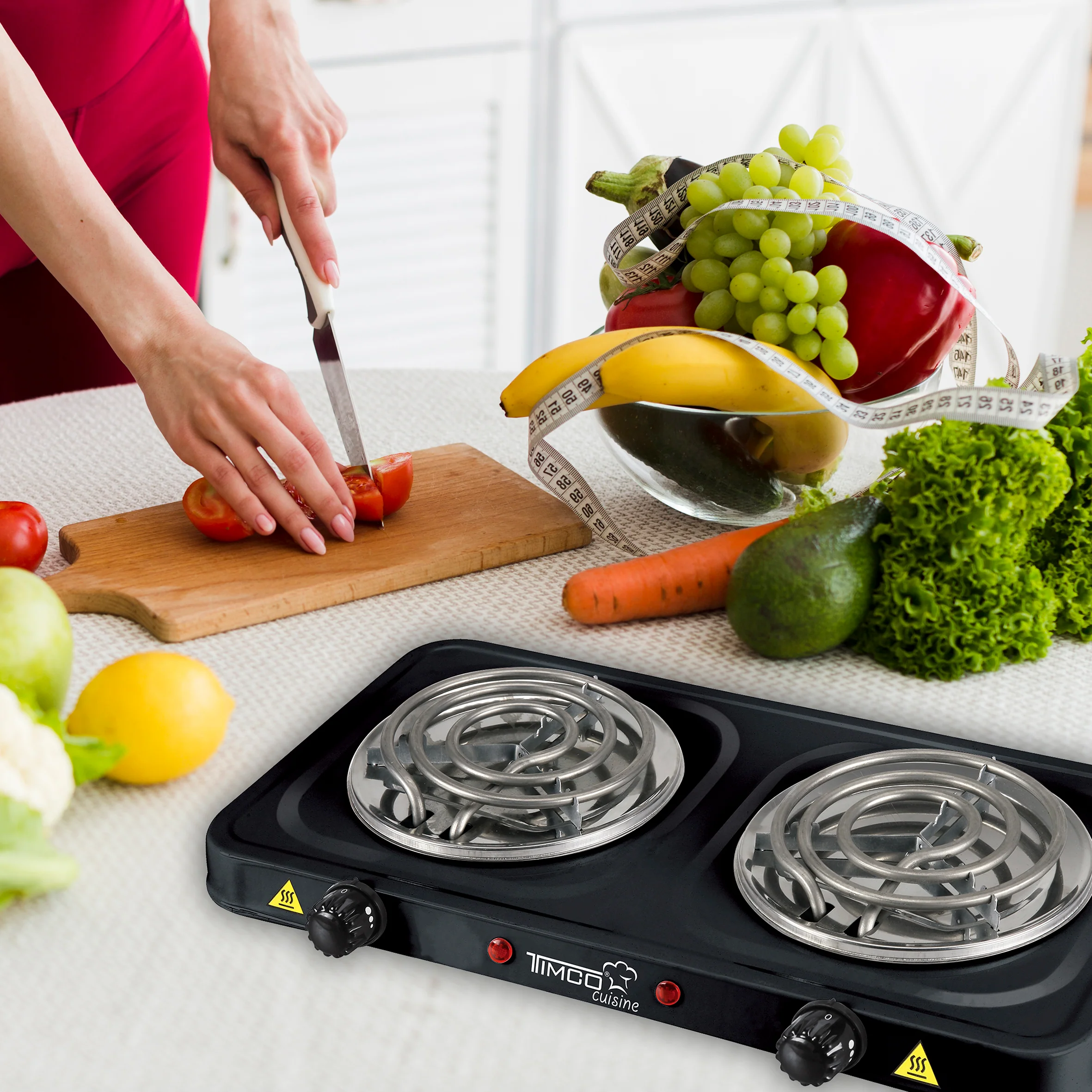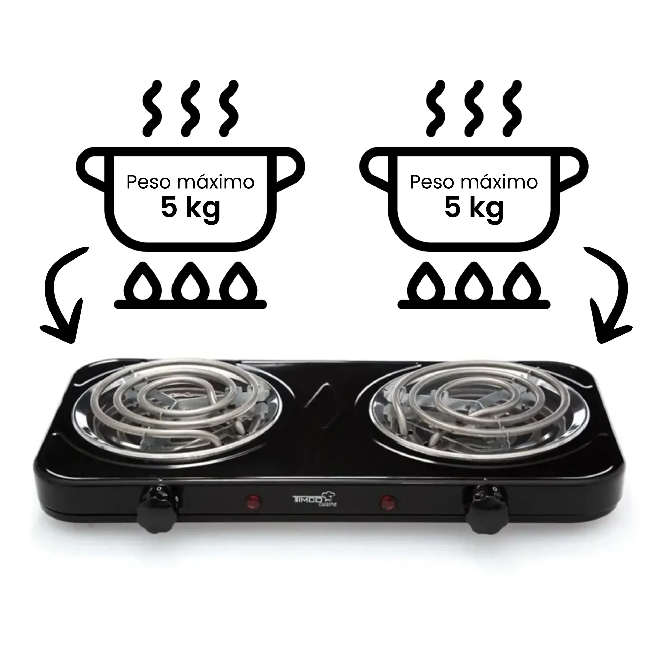 Eleva tus habilidades culinarias y disfruta de la comodidad y versatilidad de cocinar en tu hogar con la Parrilla Eléctrica de 2 Quemadores TIMCO PE-02.