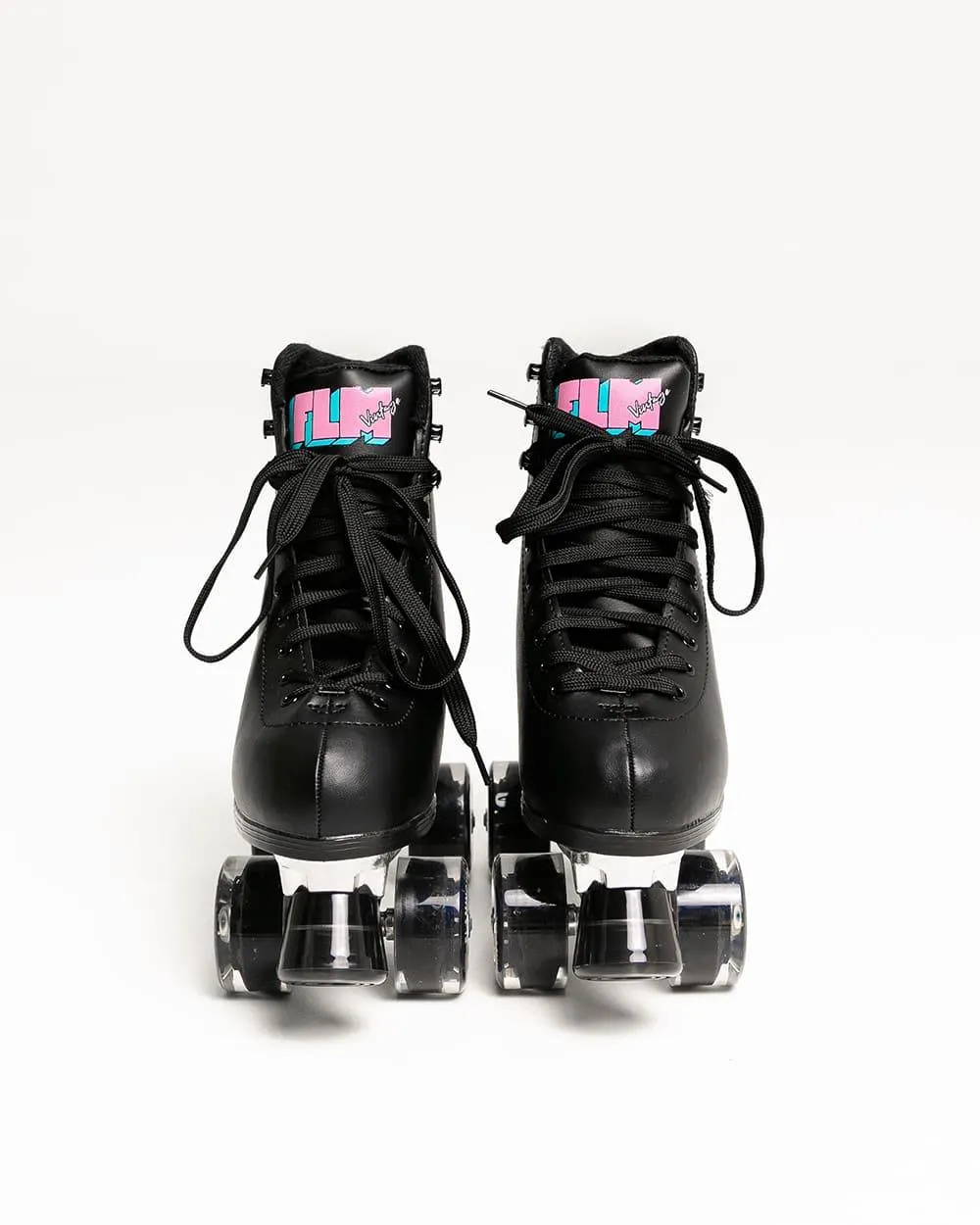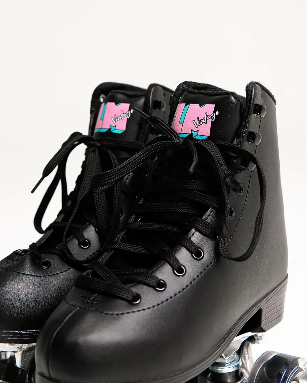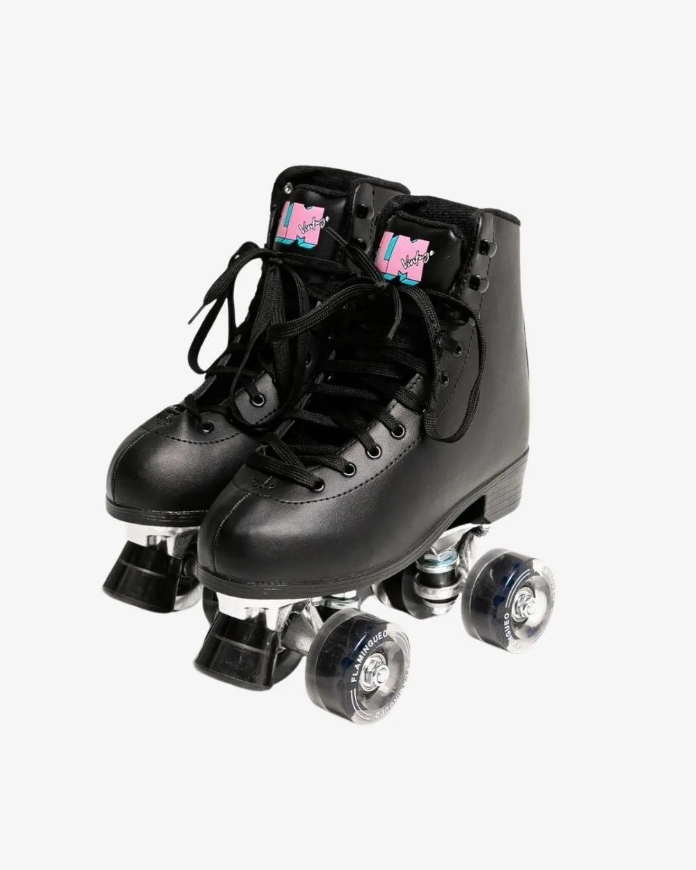 Patines 4 ruedas negros perfectos para principiantes. Diseño retro y colorido.